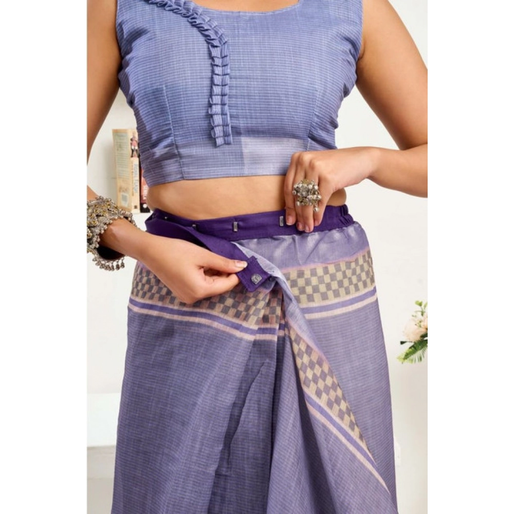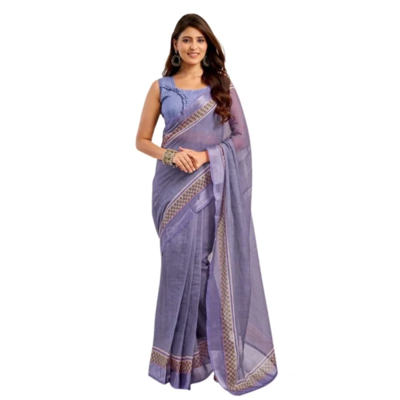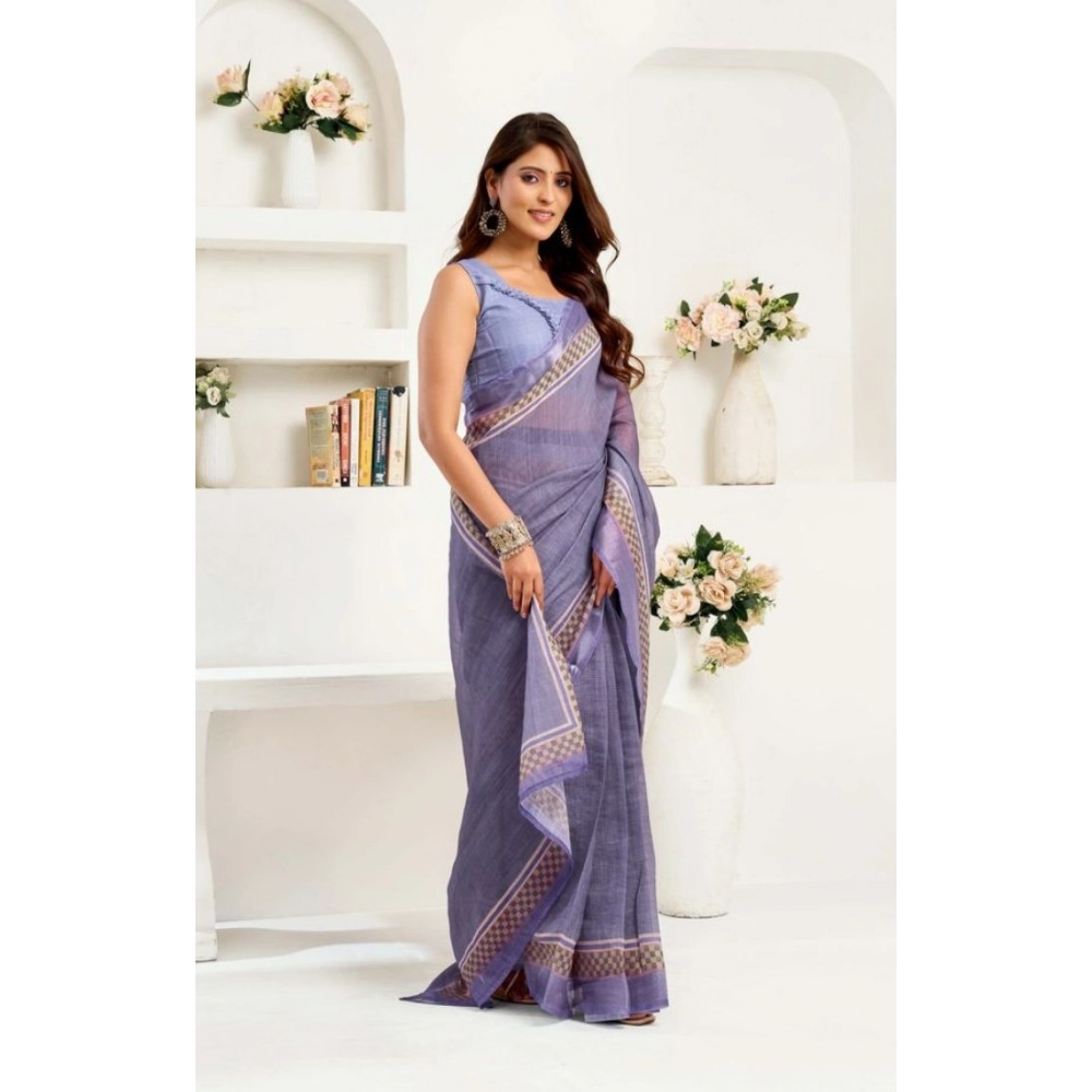 Women’s Faux Linen Printed Ready to wear Saree With Unstitched Blouse 5.5Mtr
