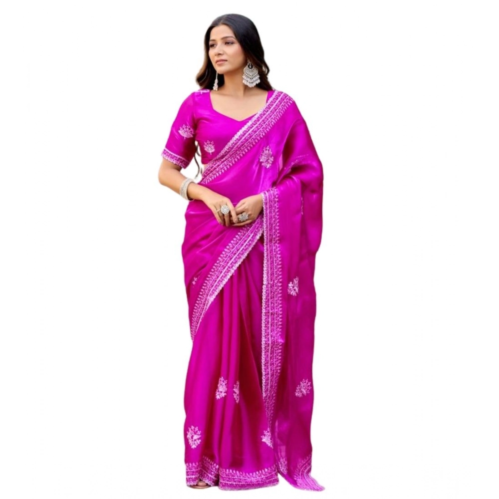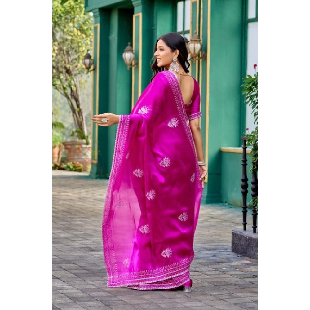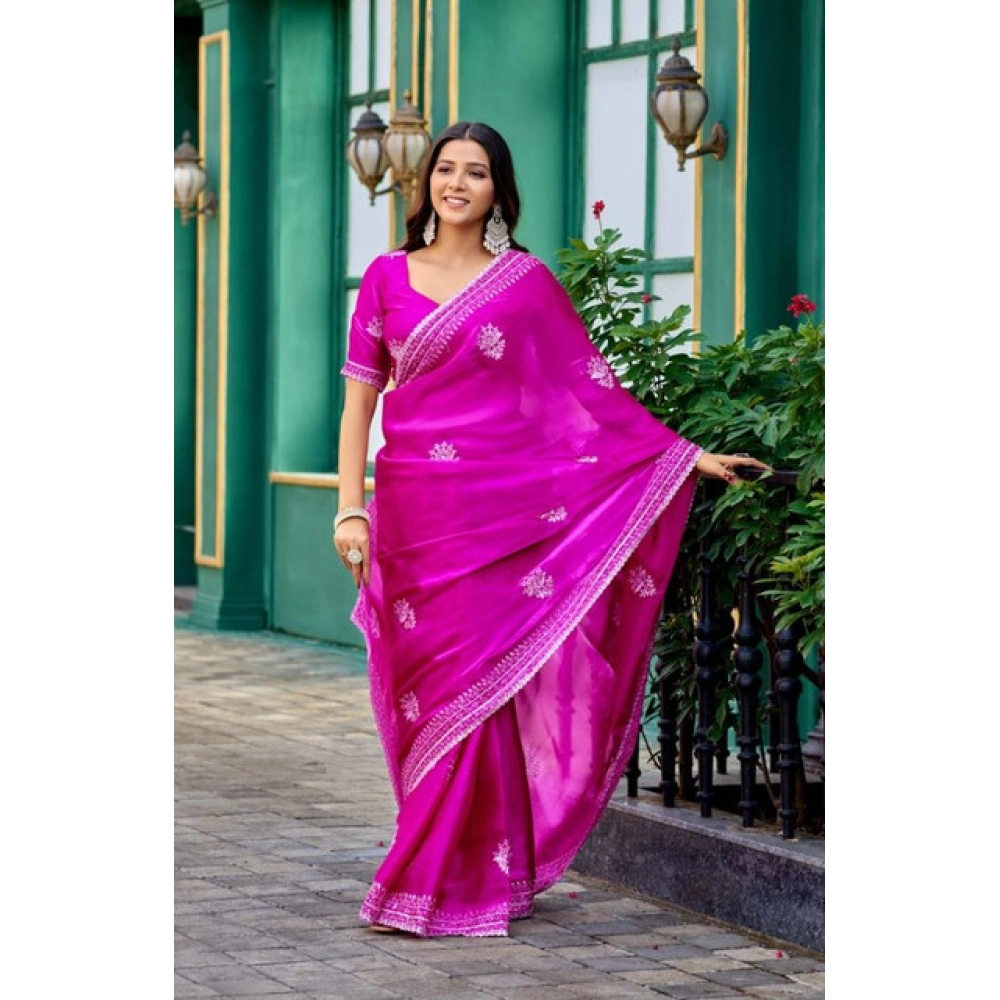 Women’s Faux Shimmer Floral Embroidery Ready to wear Saree With Unstitched Blouse 5.5Mtr