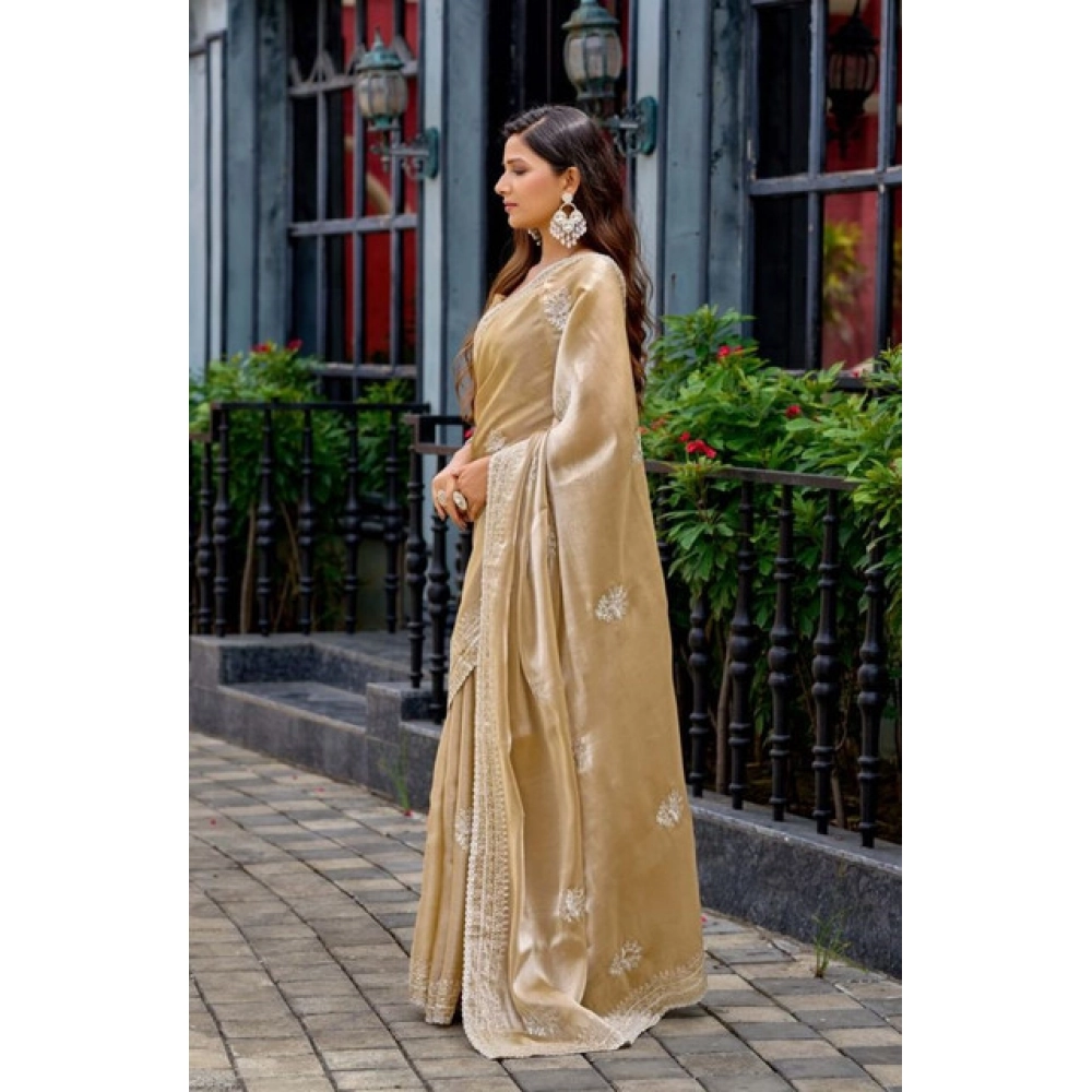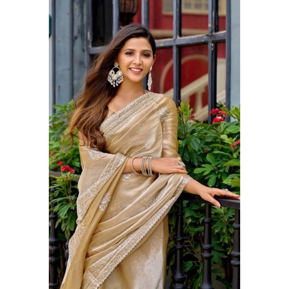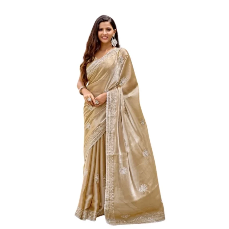Women’s Faux Shimmer Floral Motifs Ready to wear Saree With Unstitched Blouse 5.5Mtr