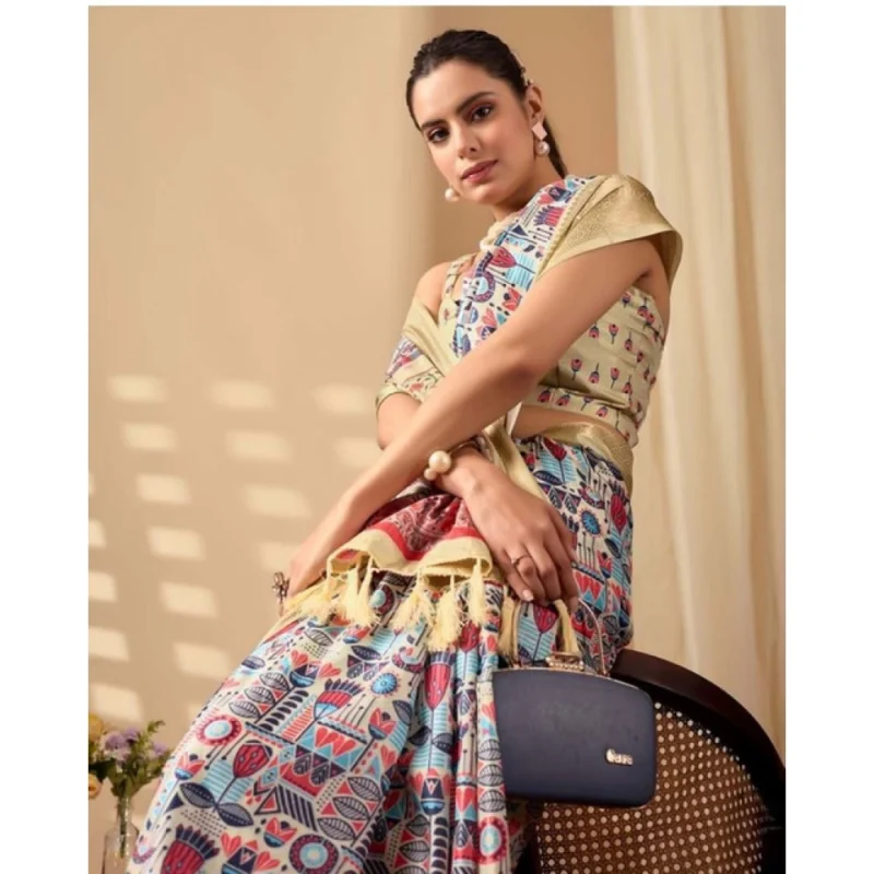 Women’s Faux_Banarasi_Silk Printed Saree With Unstitched Blouse 5.5Mtr