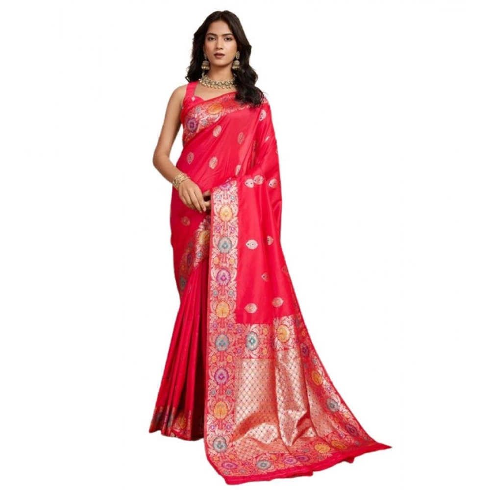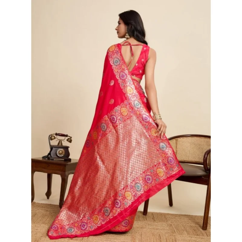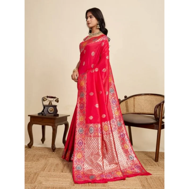 Women’s Faux_Banarasi_Silk Woven Saree With Unstitched Blouse 5.5Mtr