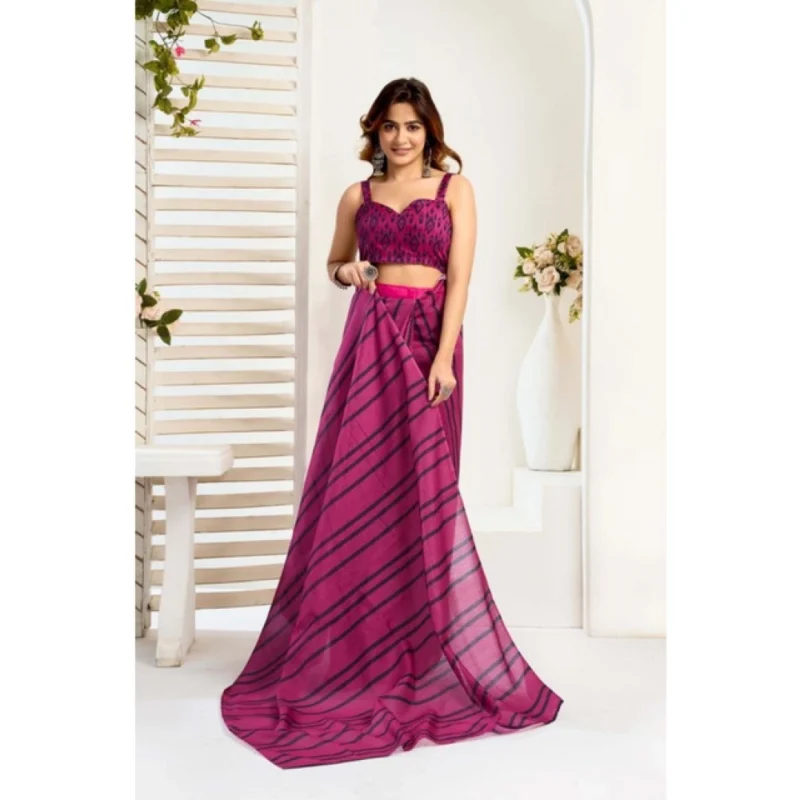 Women’s Faux_Linen Printed Ready-to-Wear Saree With Unstitched Blouse 5.5 Mtr