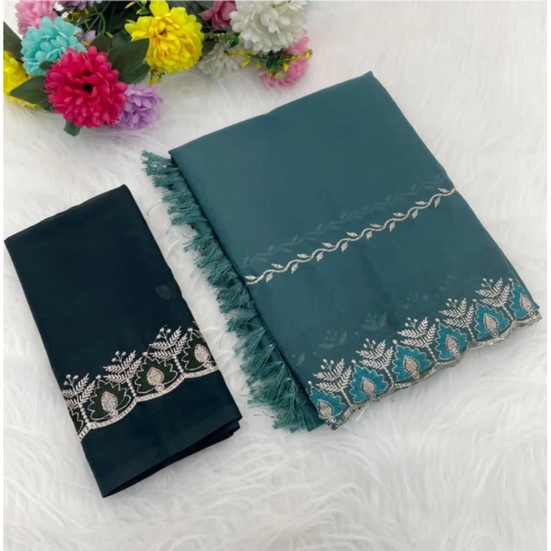 Women’s Georgette Embroidered Saree With Unstitched Blouse 5.5Mtr