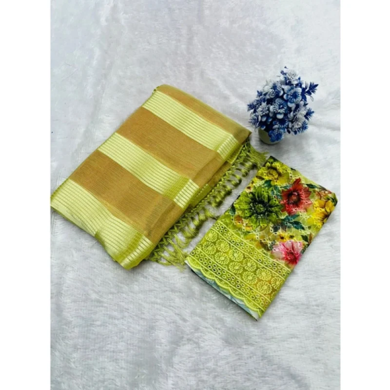 Women’s Georgette Embroidered Saree With Unstitched Blouse 5.5Mtr