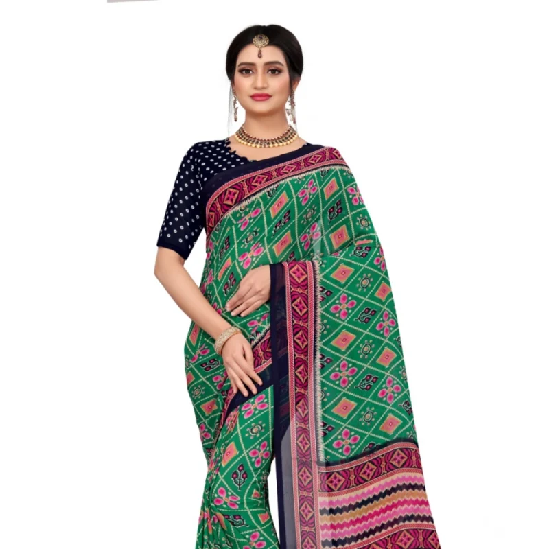 Women's Georgette Floral Print Saree With Unstitched Blouse 5.5Mtr (Green)