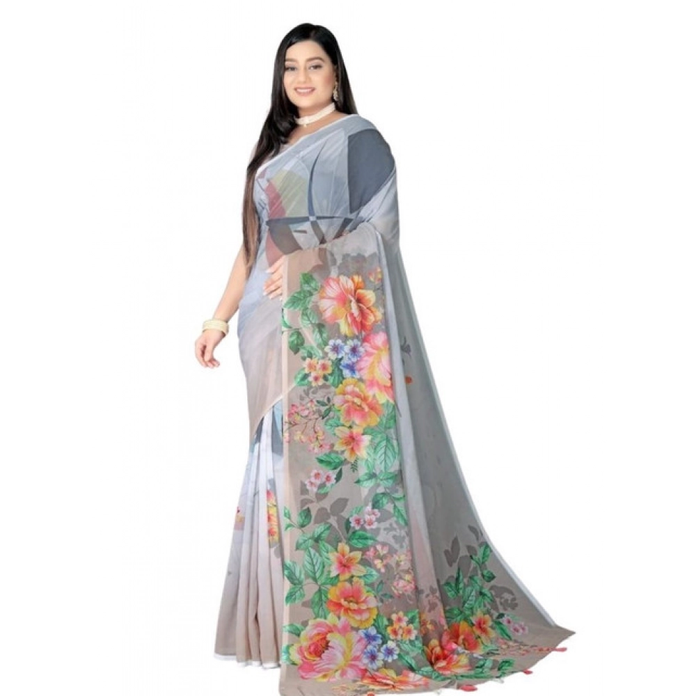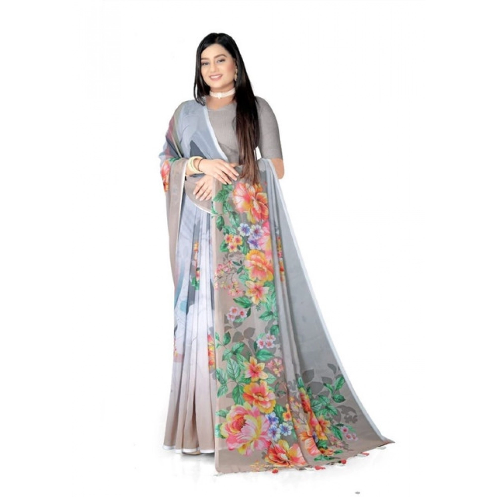 Women’s Georgette Floral Printed Saree With Unstitched Blouse 5.5Mtr