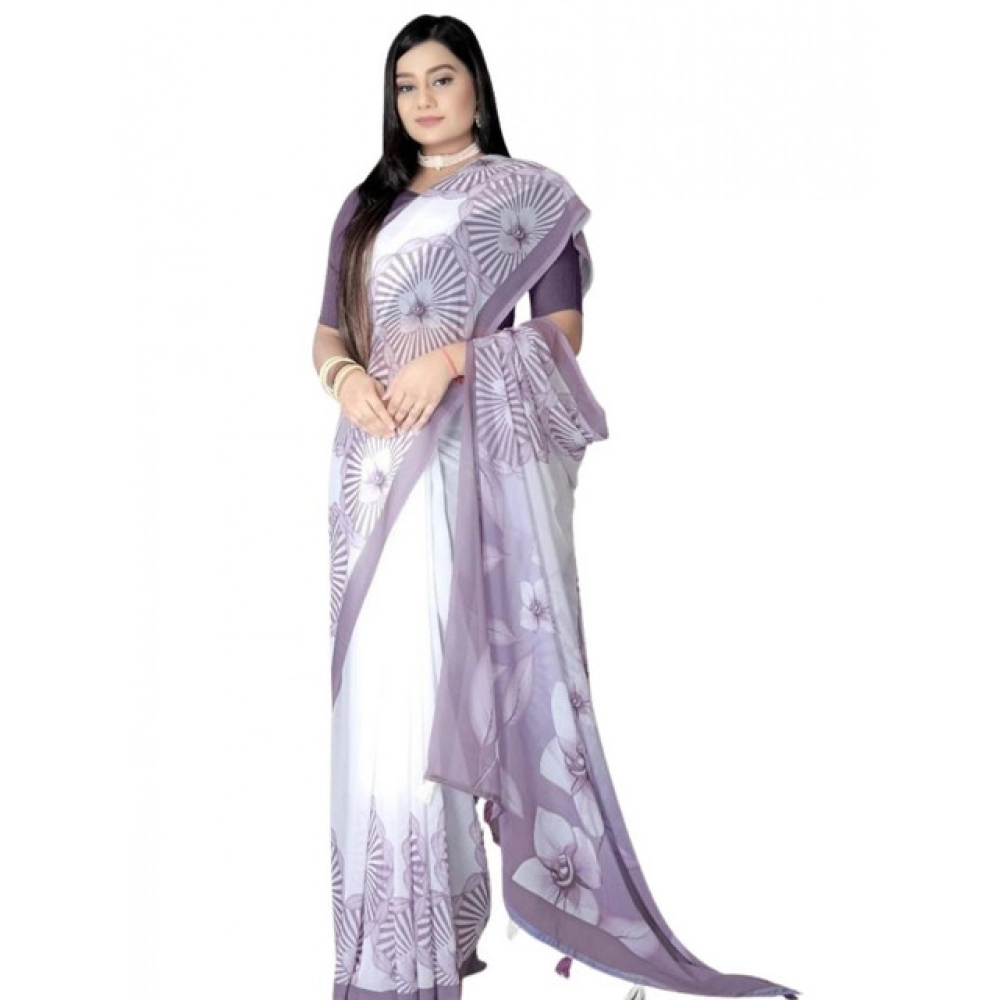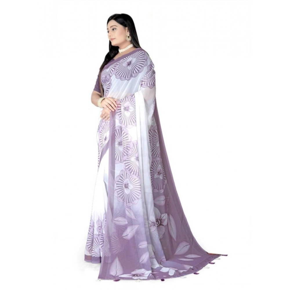 Women’s Georgette Floral Printed Saree With Unstitched Blouse 5.5Mtr