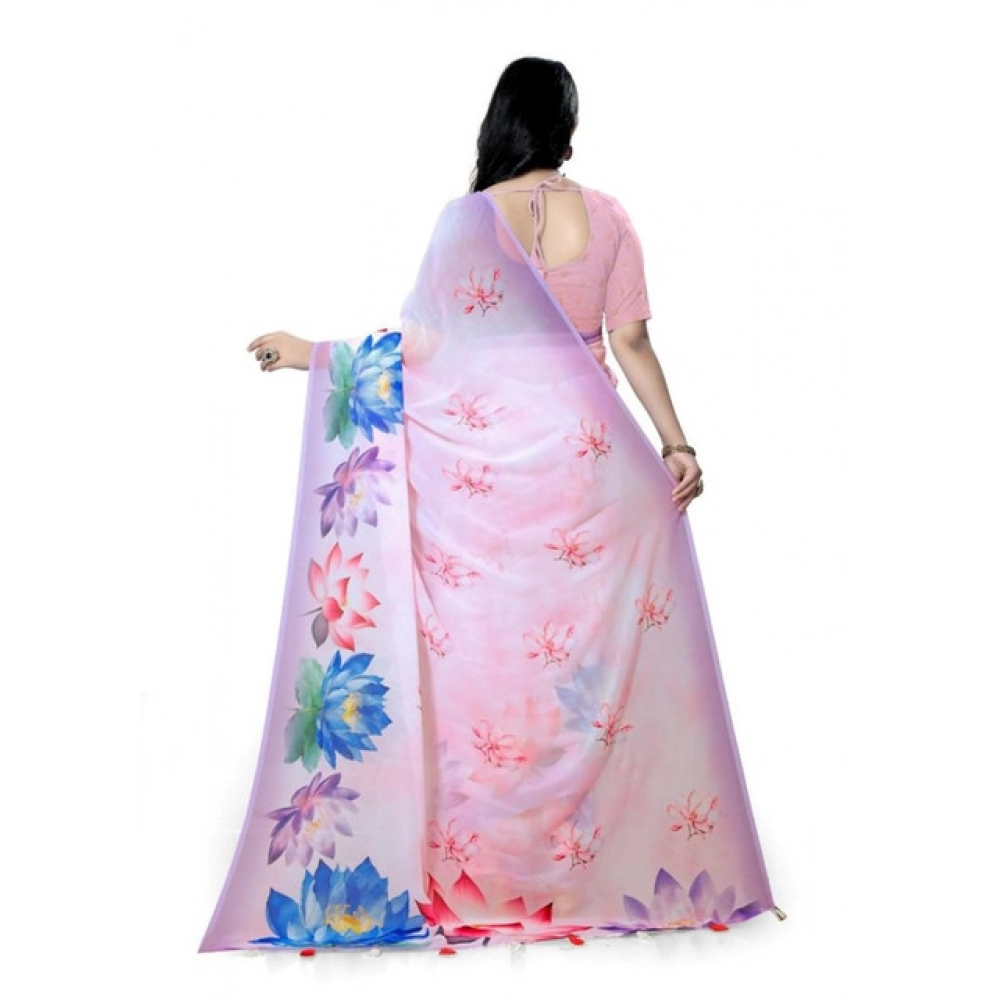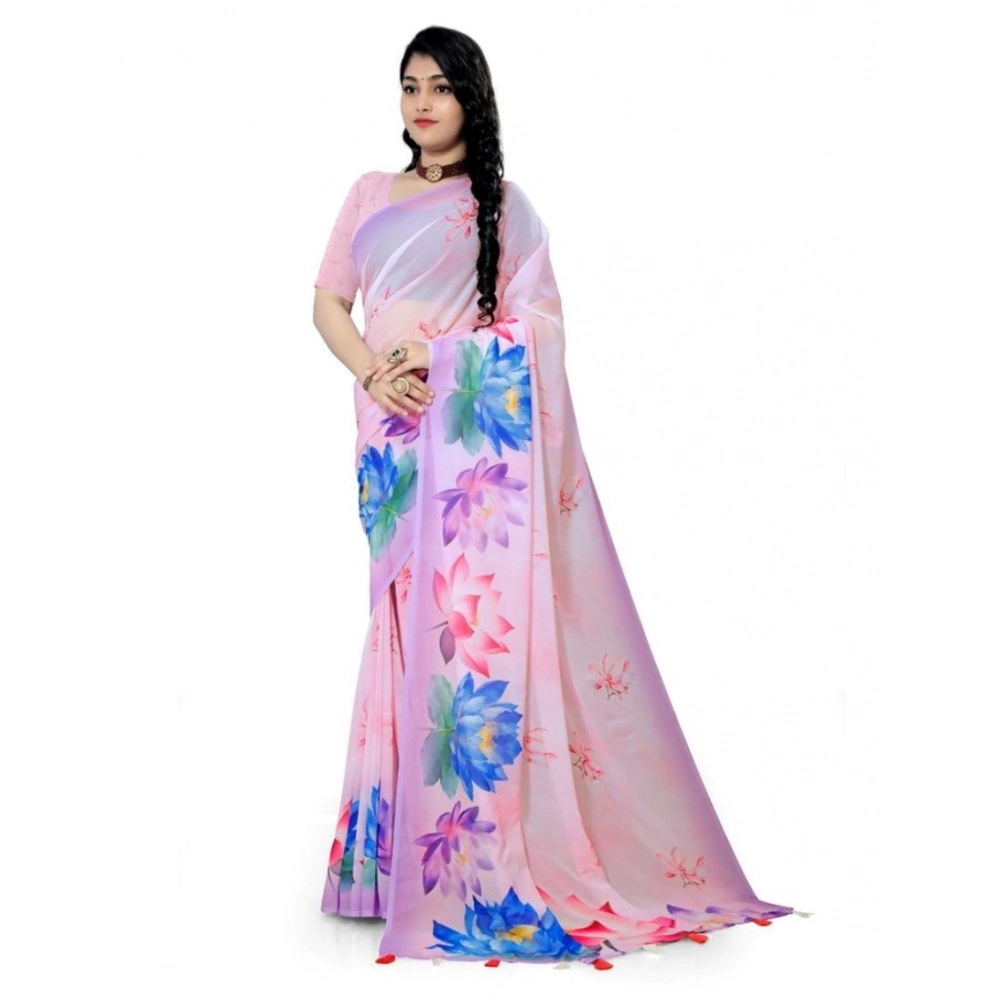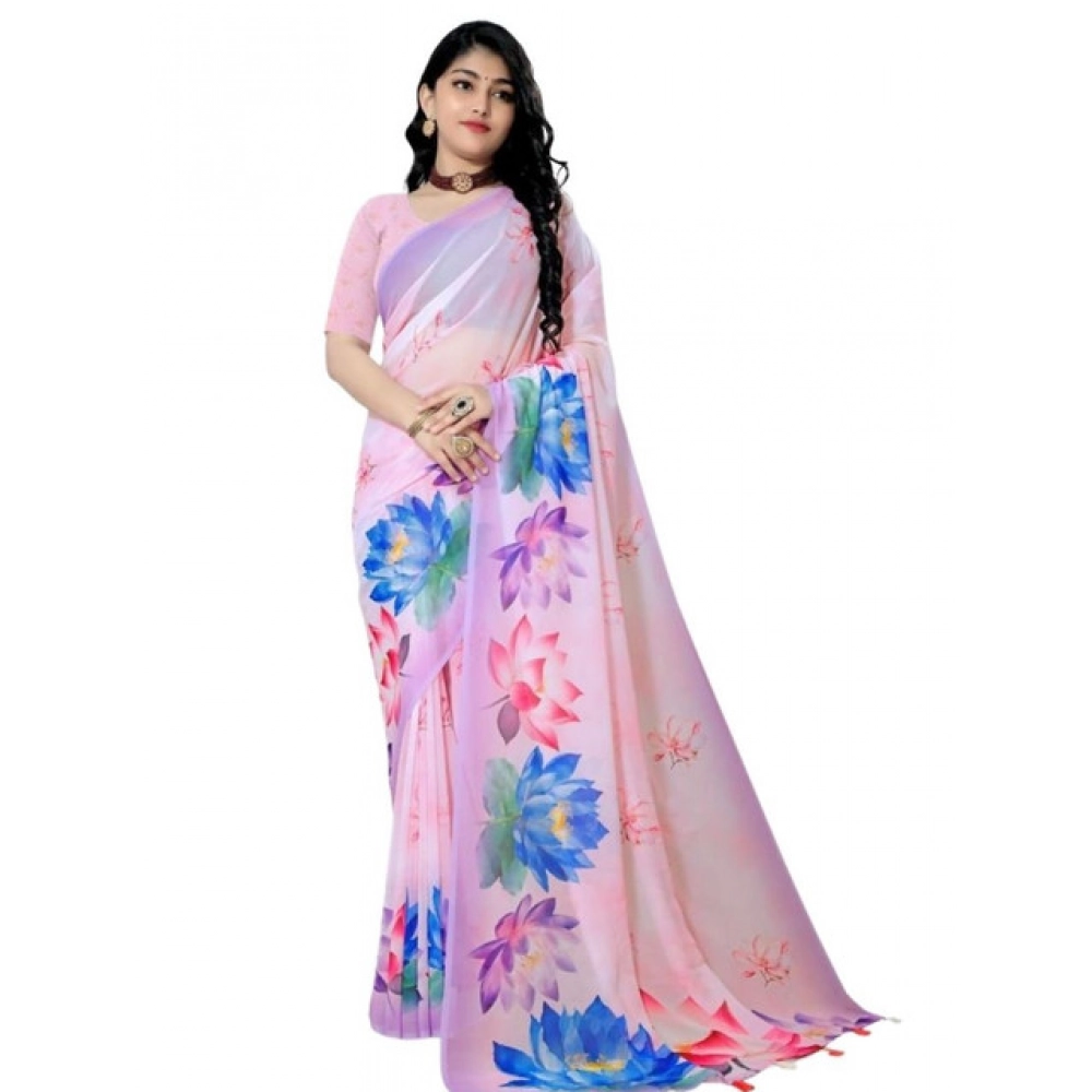 Women’s Georgette Floral Printed Saree With Unstitched Blouse 5.5Mtr