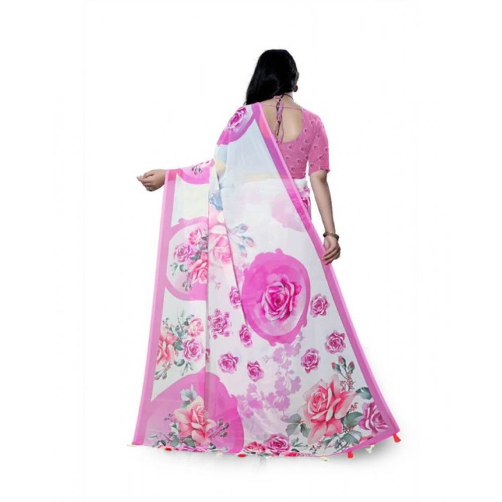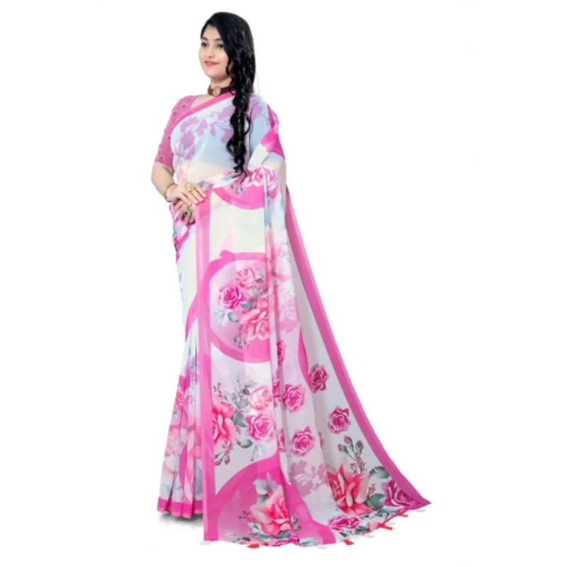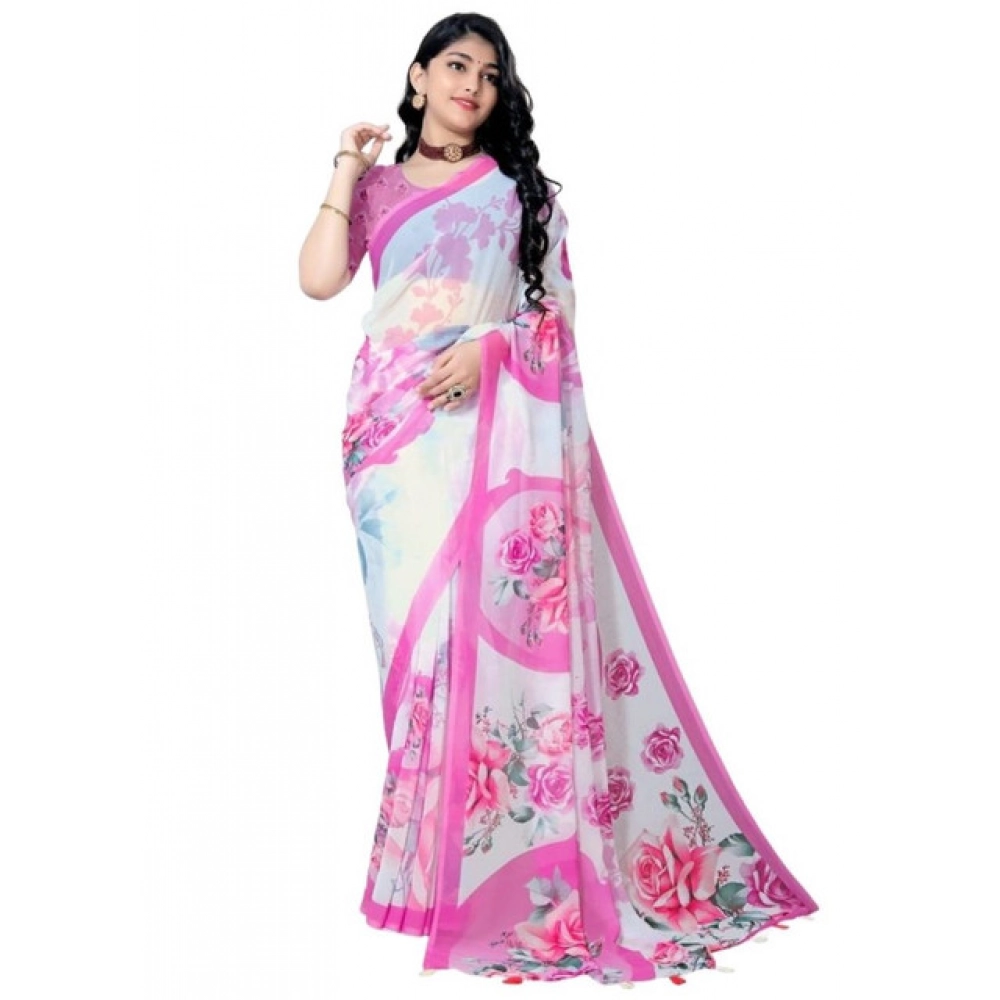 Women’s Georgette Floral Printed Saree With Unstitched Blouse 5.5Mtr