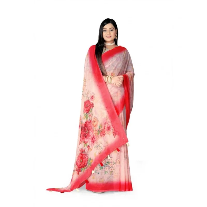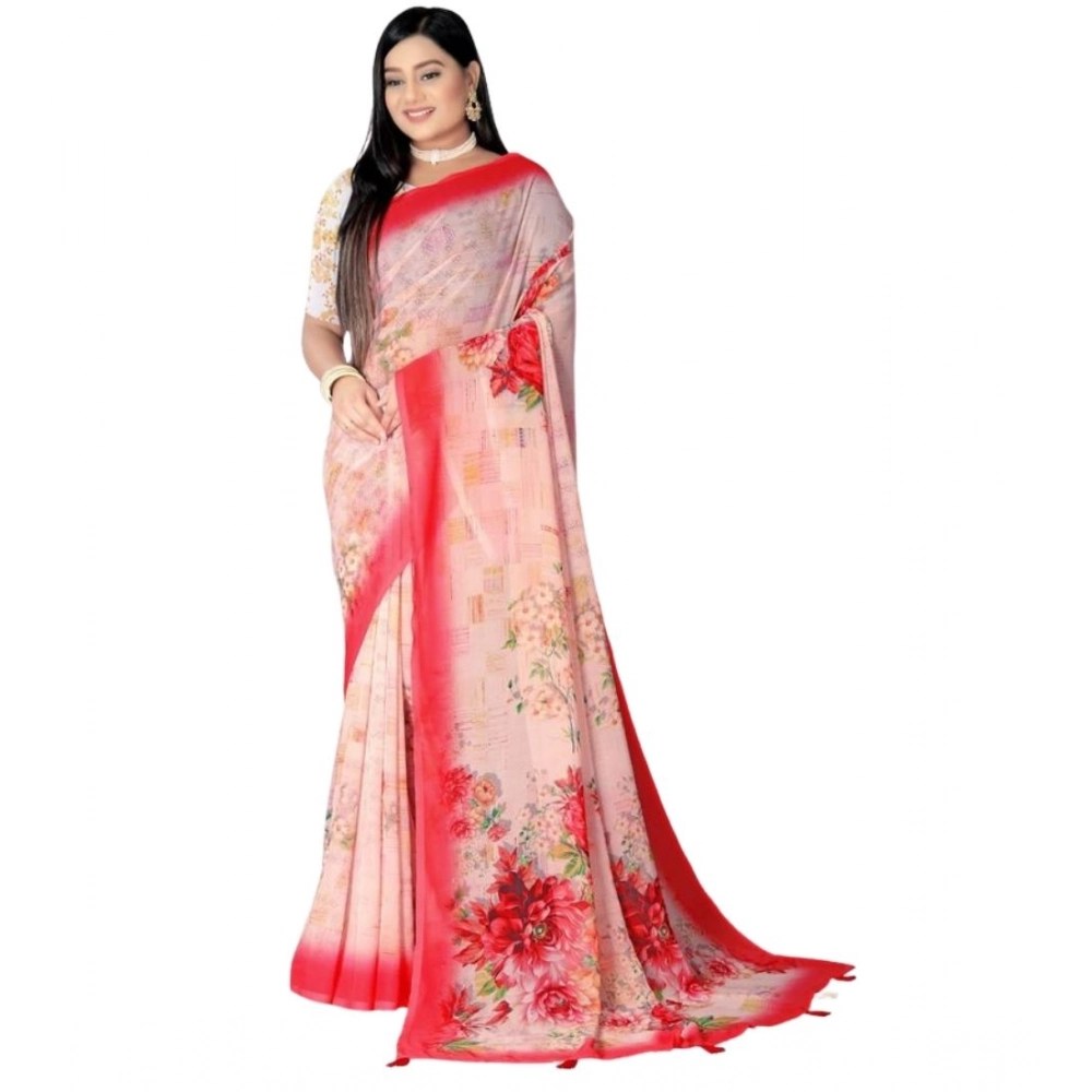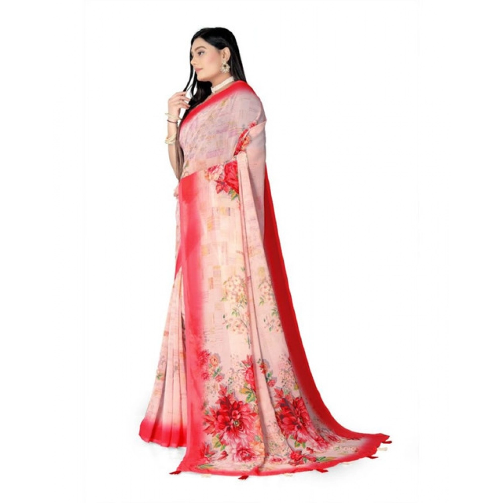 Women’s Georgette Floral Printed Saree With Unstitched Blouse 5.5Mtr