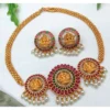 Women’s Gold Plated Temple Necklace and Earrings Set (Red, Free Size)