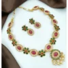 Women’s Gold Plated Traditional Necklace and Earrings Set (Red, Free Size)