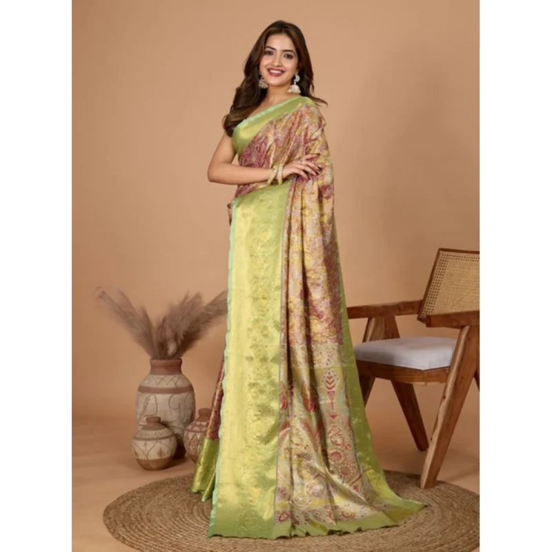 Women’s Jacquard Embellished Saree With Unstitched Blouse 5.5Mtr