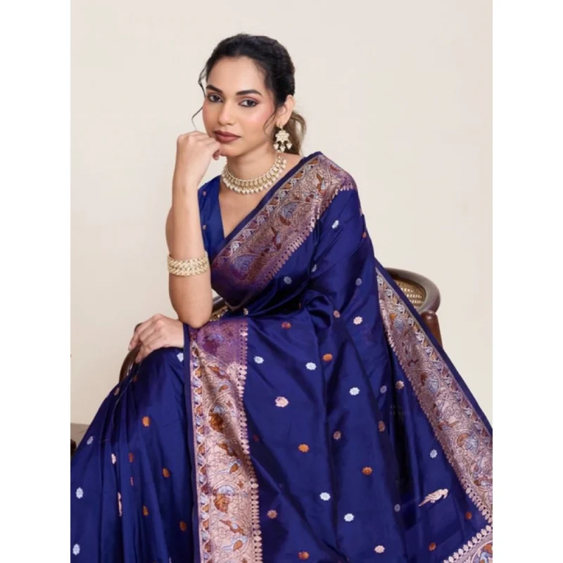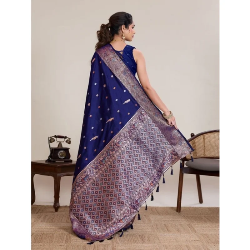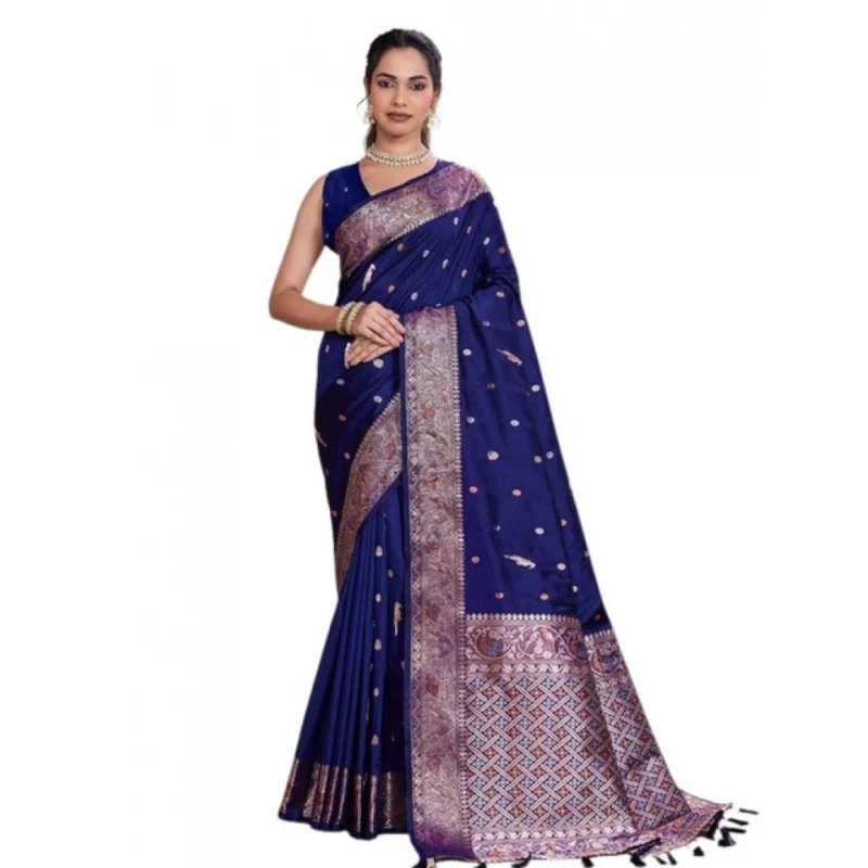 Women's Jacquard Woven Saree With Unstitched Blouse 5.5Mtr (Navy)