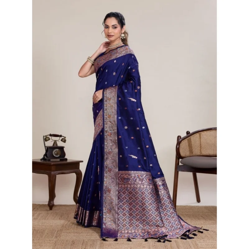 Women’s Jacquard Woven Saree With Unstitched Blouse 5.5Mtr (Navy)