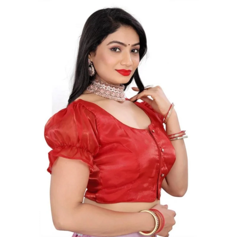 Women’s Jimmy Solid Designer Neck Elastic Sleeve Readymade Blouse