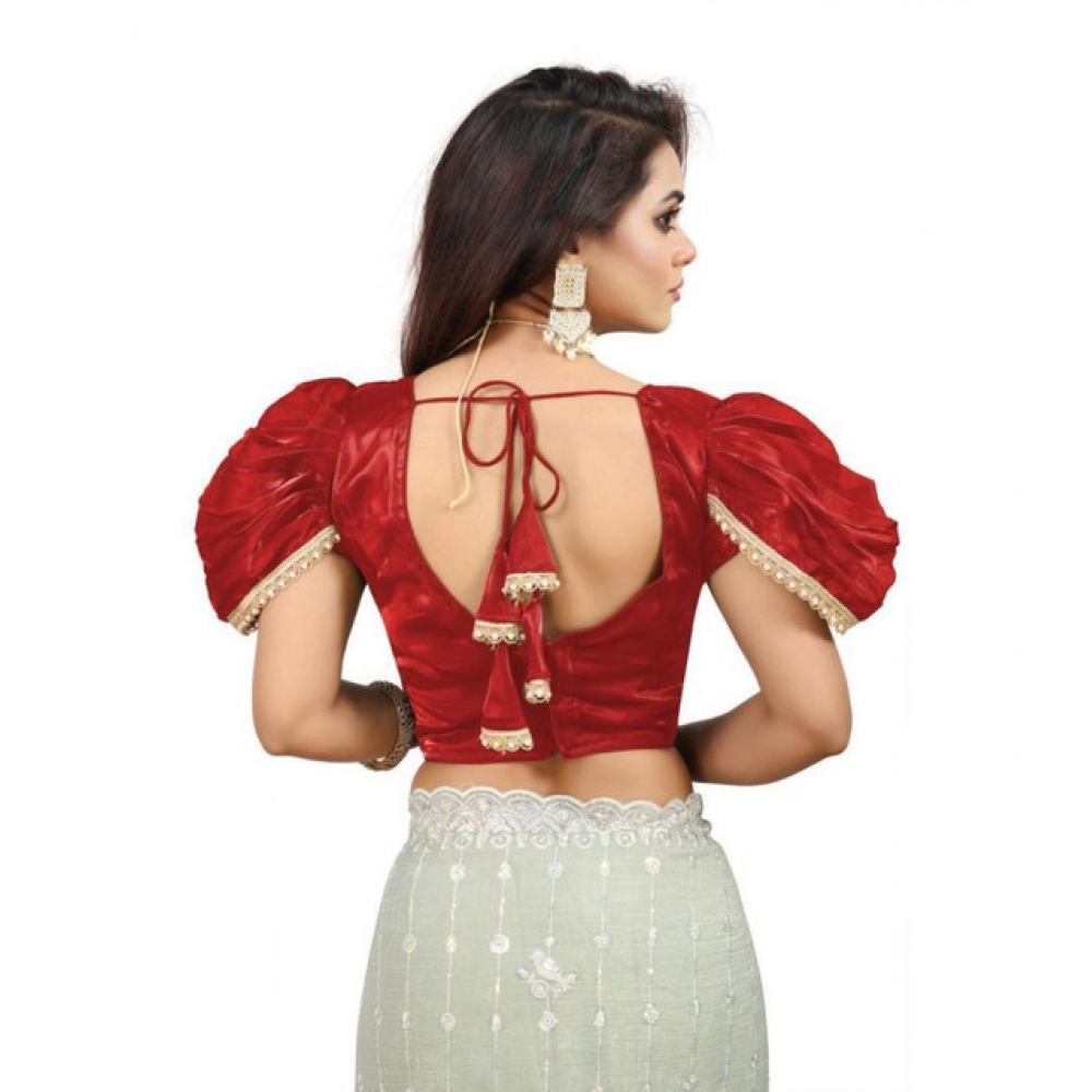 Women's Jimmy Solid V Neck Puff Sleeve Readymade Blouse (Red 38 , Alterable up to 42)-PID65844