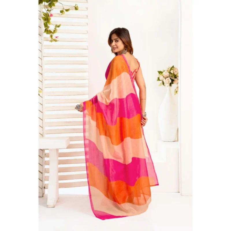 Women’s Linen Cotton Printed Ready To Wear Saree With Unstitched Blouse 5.5 Mtr