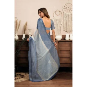 Women's Linen Cotton Printed Ready To Wear With Pocket Saree With Unstitched Blouse 5.5 Mtr (Light_Blue)