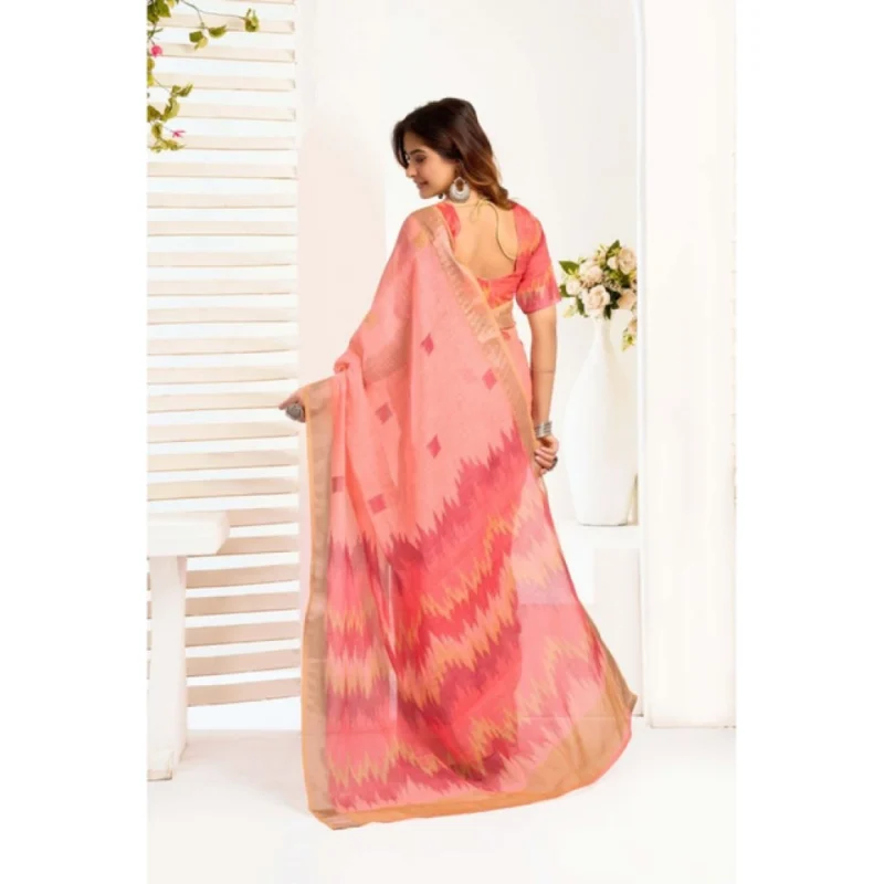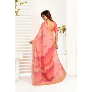 Women’s Linen Cotton Printed Ready To Wear With Pocket Saree With Unstitched Blouse 5.5 Mtr