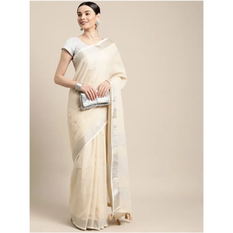 Women’s Linen Cotton Printed Saree With Unstitched Blouse 5.5Mtr