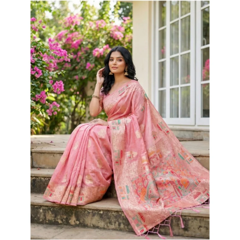 Women’s Linen Cotton Printed Saree With Unstitched Blouse 5.5Mtr