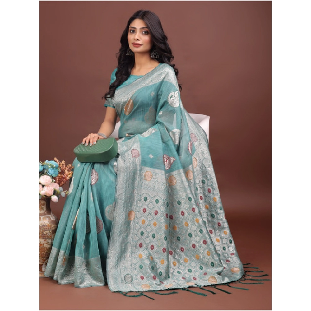 Women’s Linen Cotton Printed Saree With Unstitched Blouse 5.5Mtr