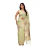 Women’s Linen Cotton Printed Saree With Unstitched Blouse 5.5Mtr (Sea Green)