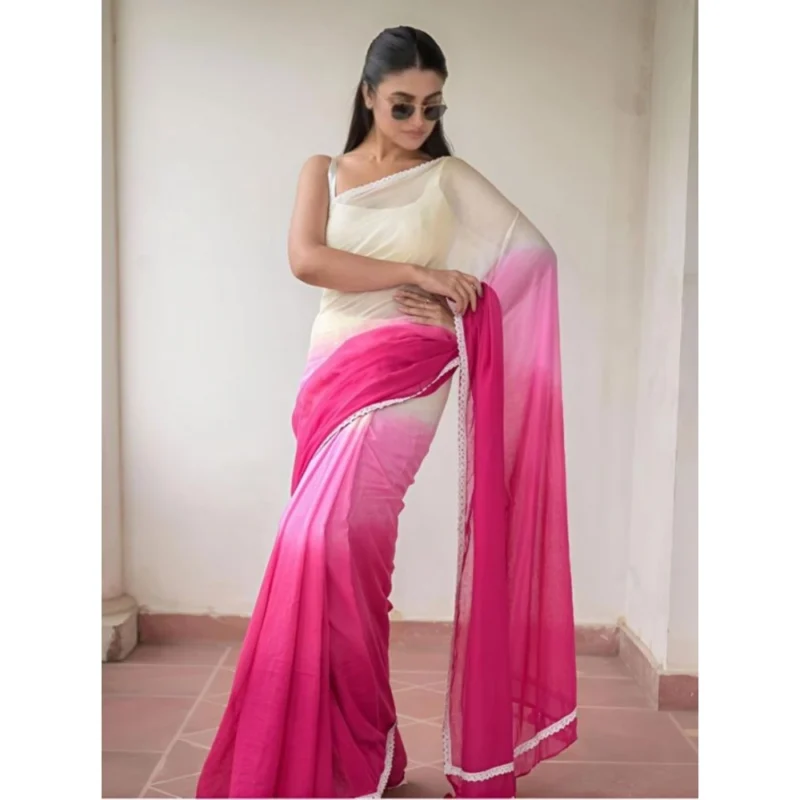 Women’s Linen Printed Saree With Unstitched Blouse 5.5Mtr