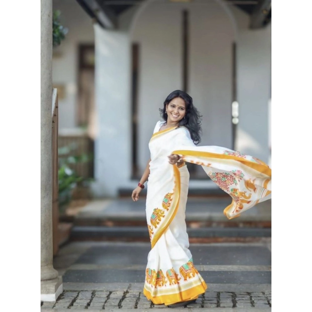 Women’s Linen Printed Saree With Unstitched Blouse 5.5Mtr