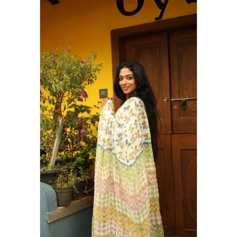 Women’s Linen Printed Saree With Unstitched Blouse 5.5Mtr