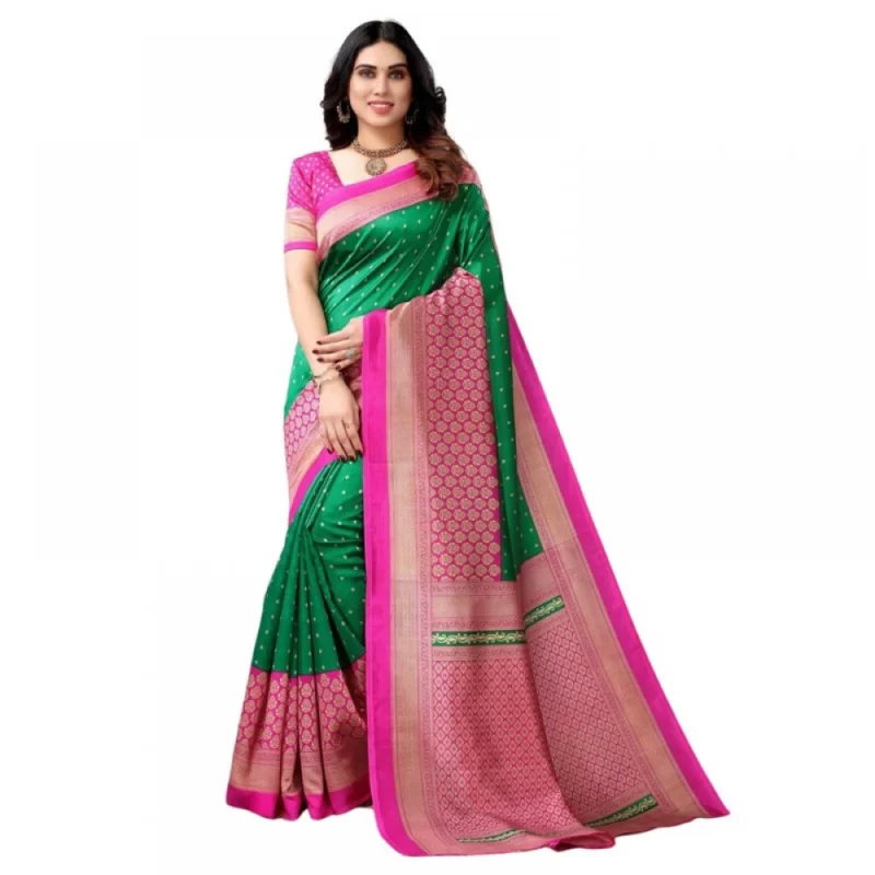 Women’s Litchi silk Printed Saree With Unstitched Blouse