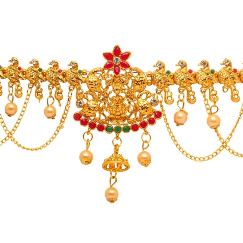 Women’s Maroon & Green Color Glass Stone Kamarband Adjustable Chain
