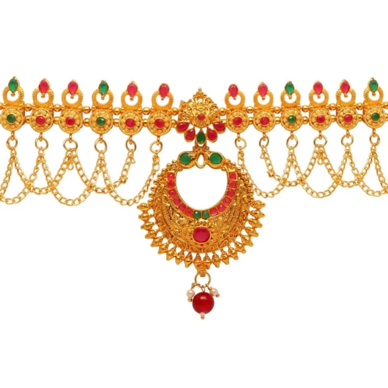 Women’s Maroon & Green Color Glass Stone Kamarband Adjustable Chain
