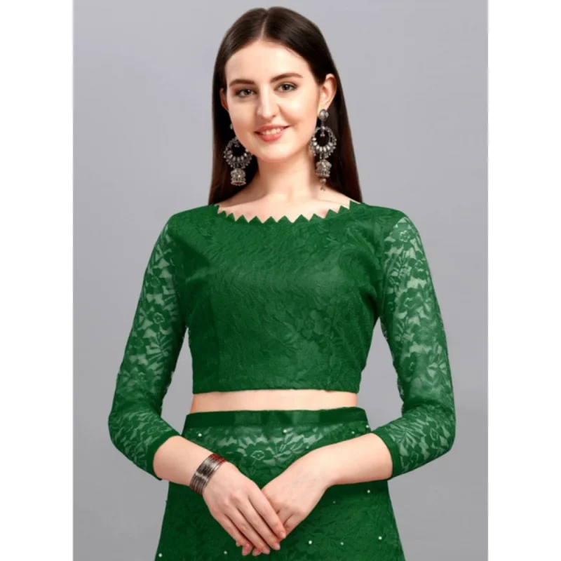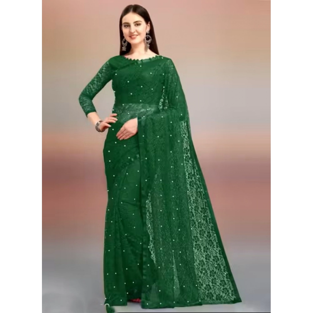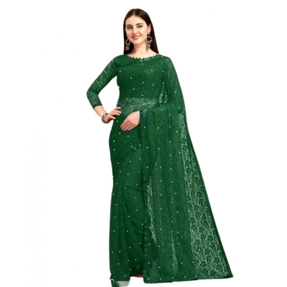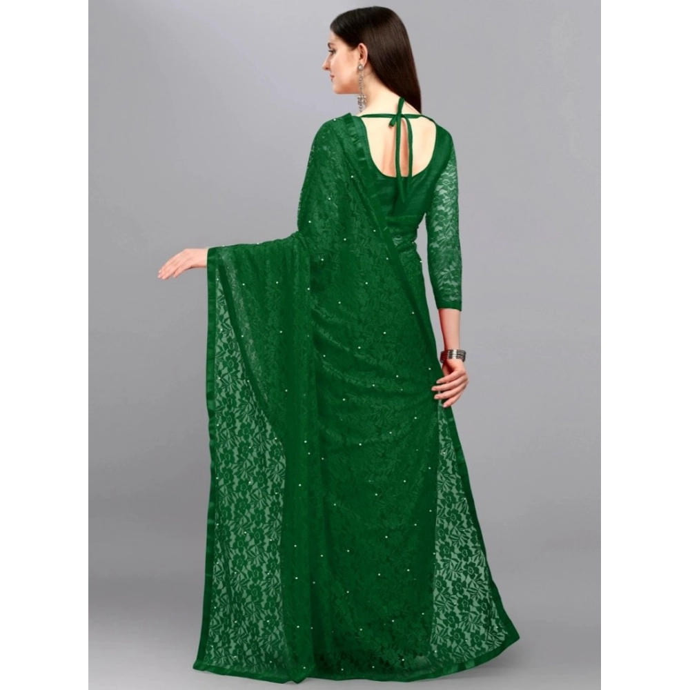 Women's Net Self Design Saree With Unstitched Blouse 5.5Mtr (Green)