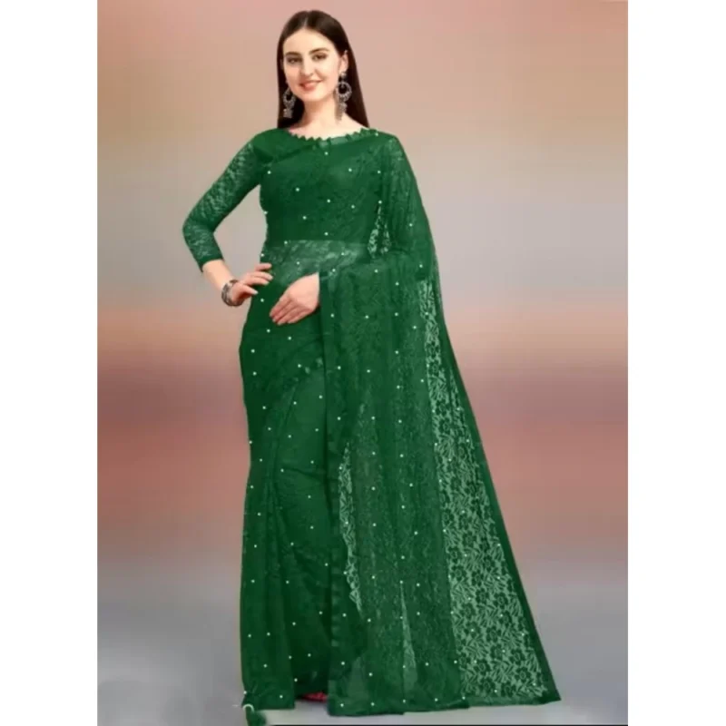 Women’s Net Self Design Saree With Unstitched Blouse 5.5Mtr (Green)