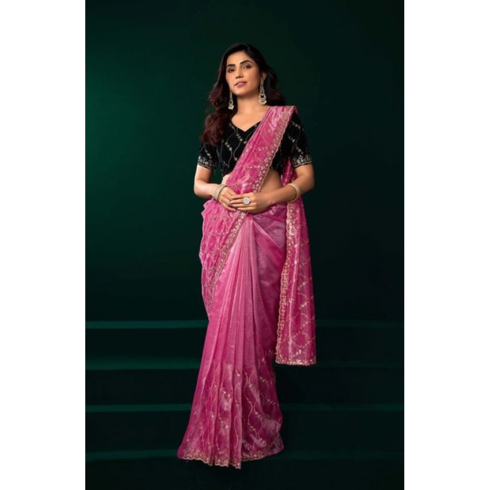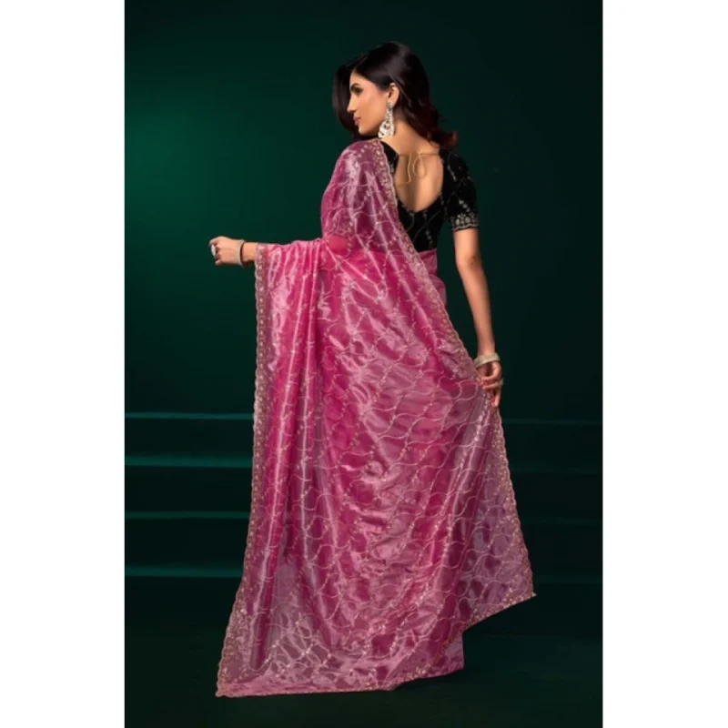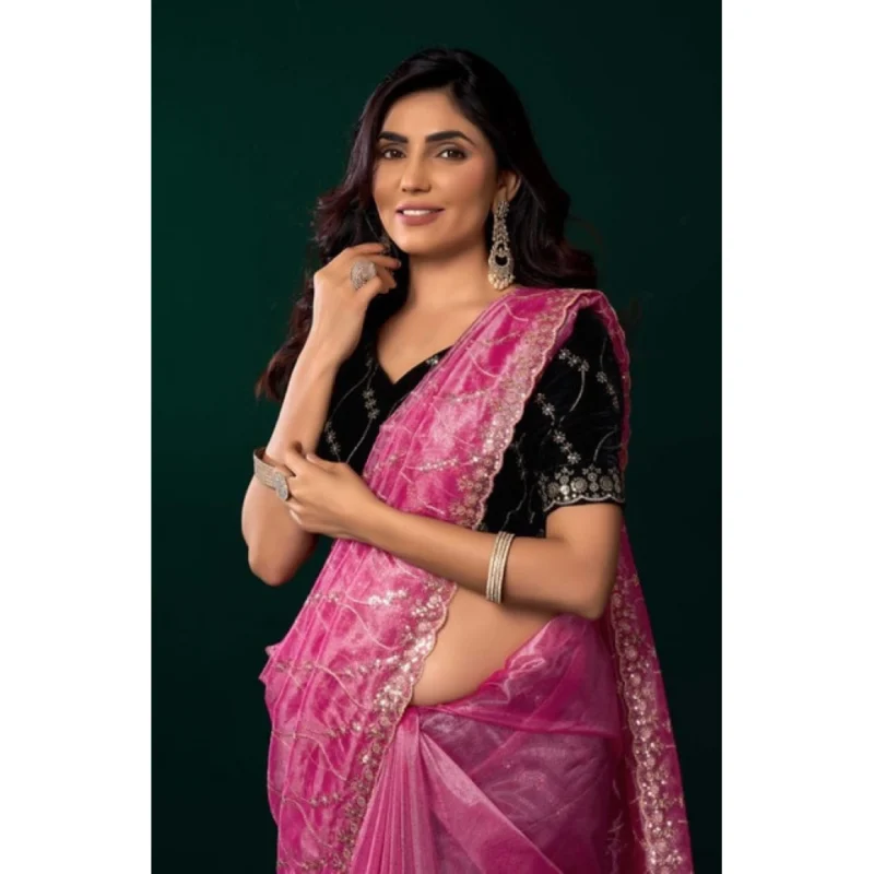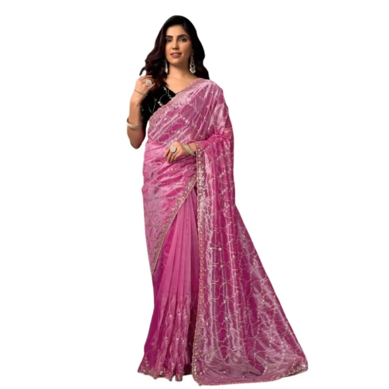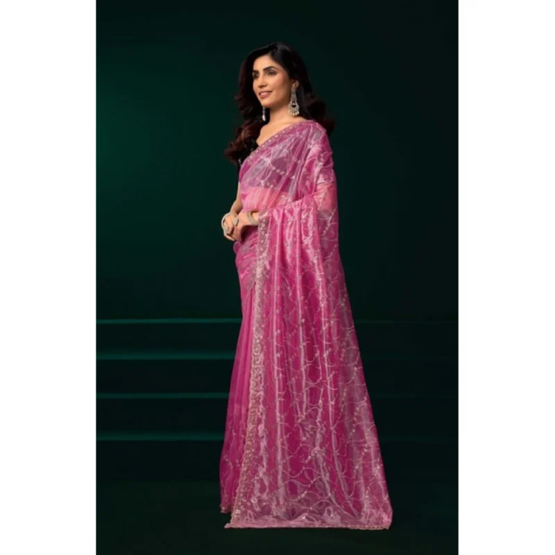 Women’s Net Sequence Saree With Unstitched Blouse 5.5Mtr