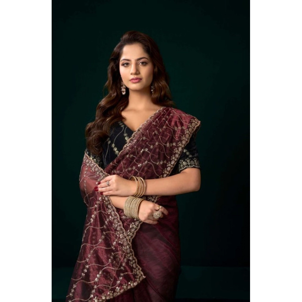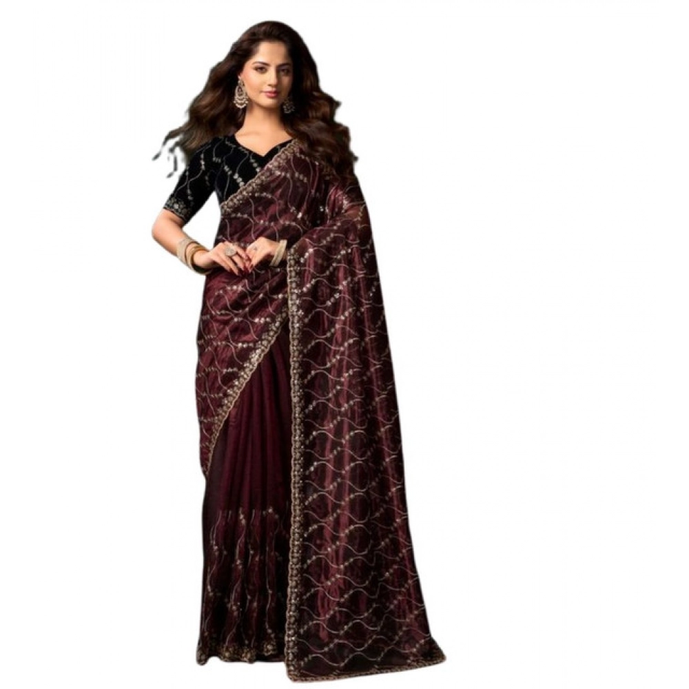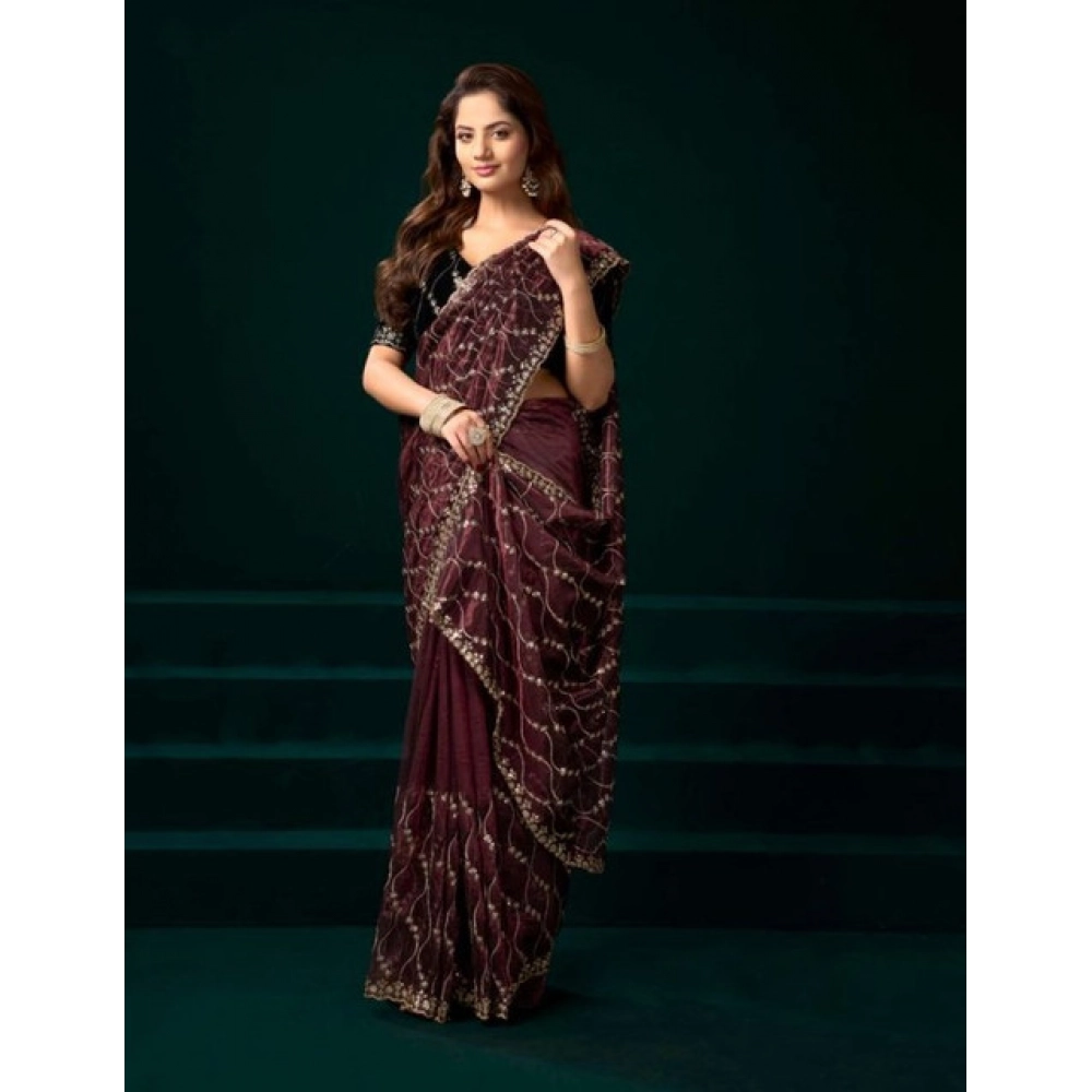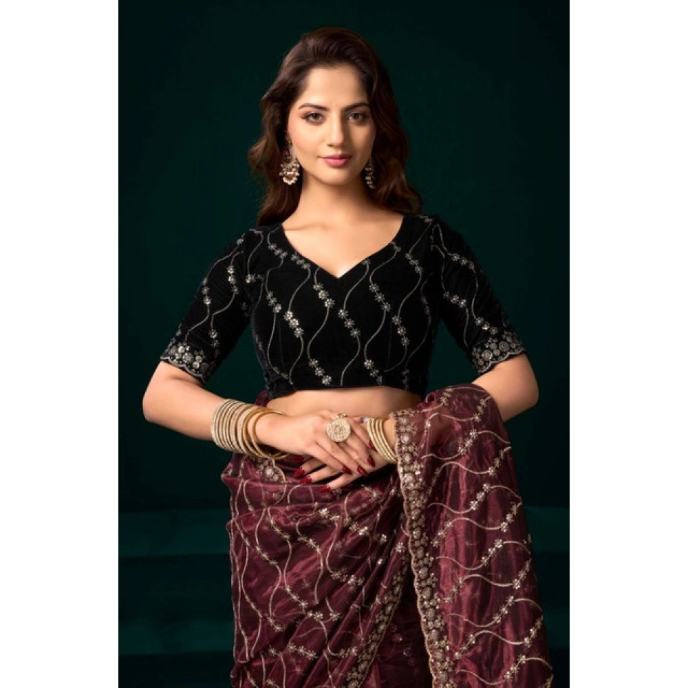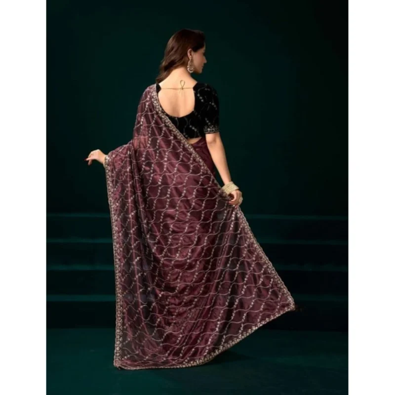 Women’s Net Sequence Saree With Unstitched Blouse 5.5Mtr