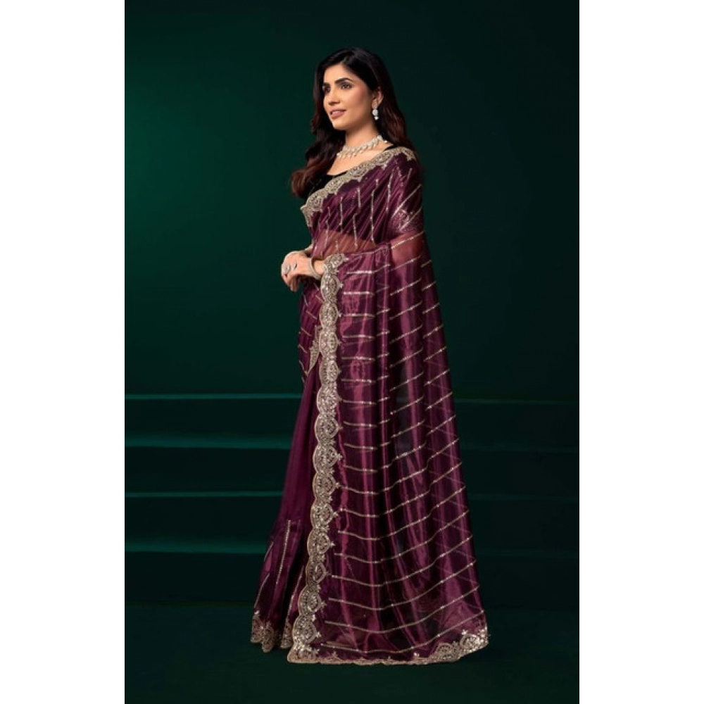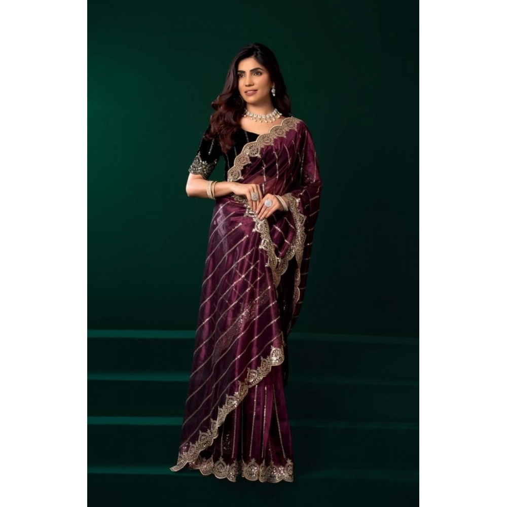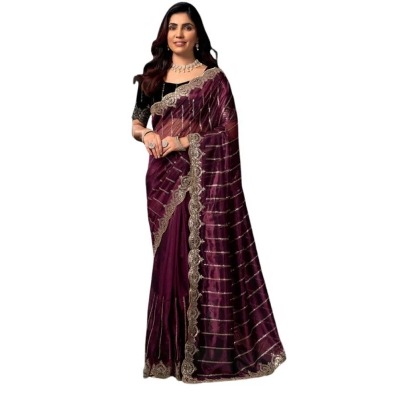 Women’s Net Sequence Saree With Unstitched Blouse 5.5Mtr