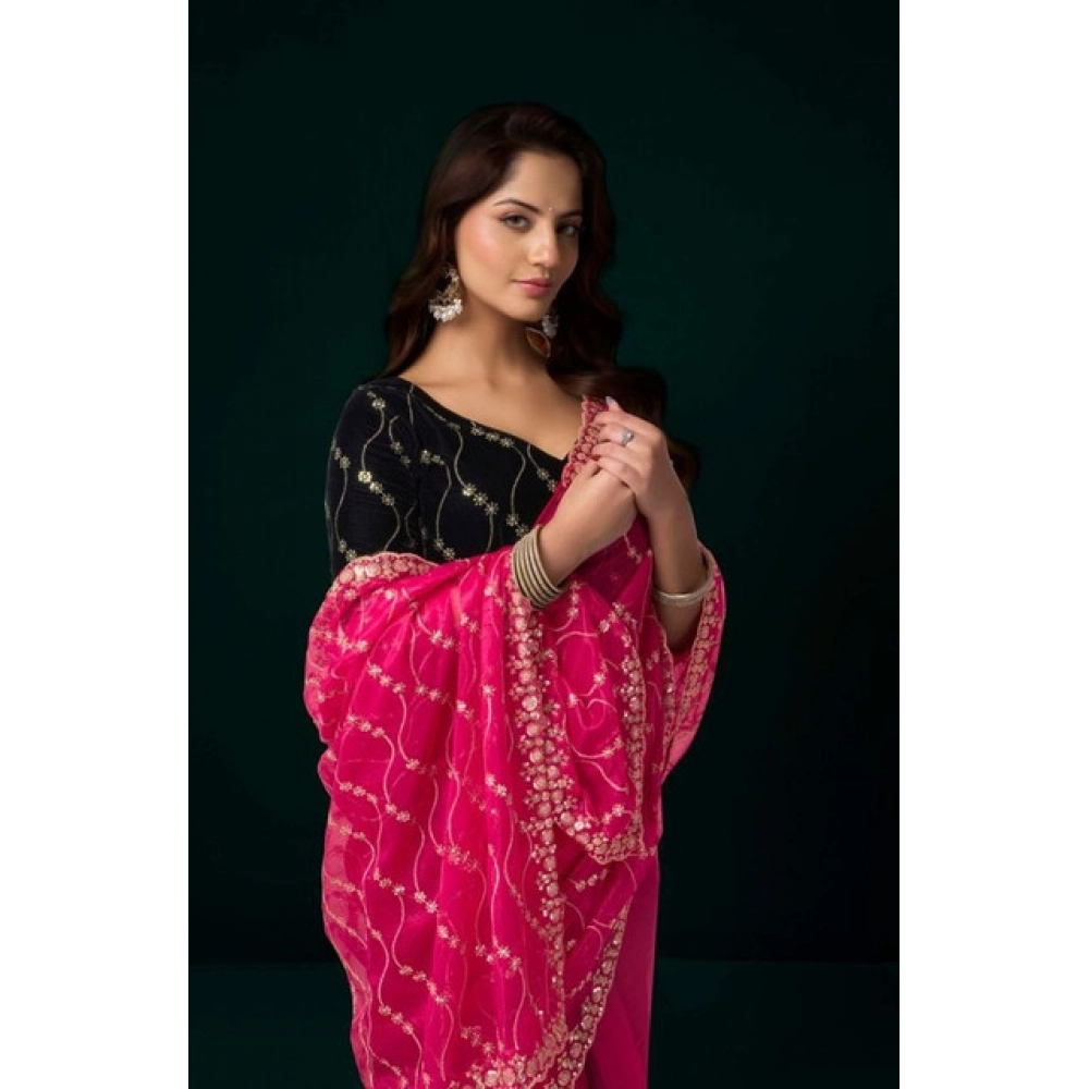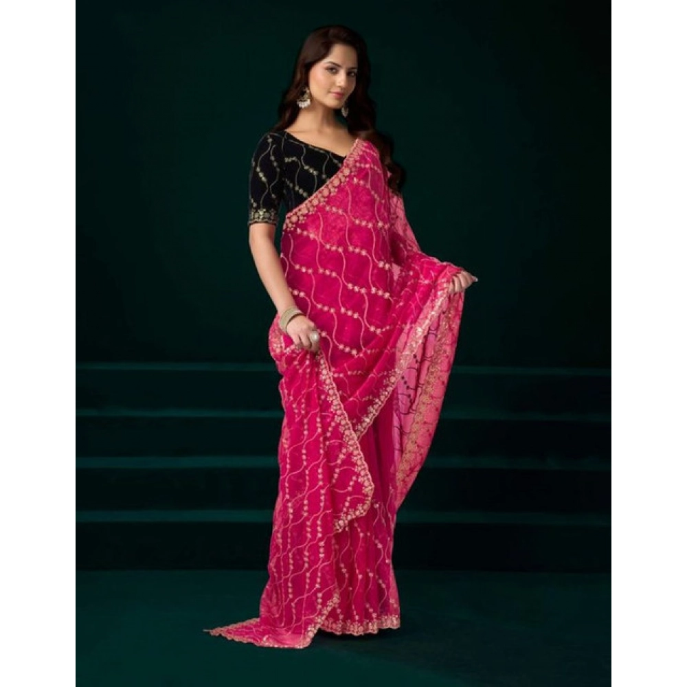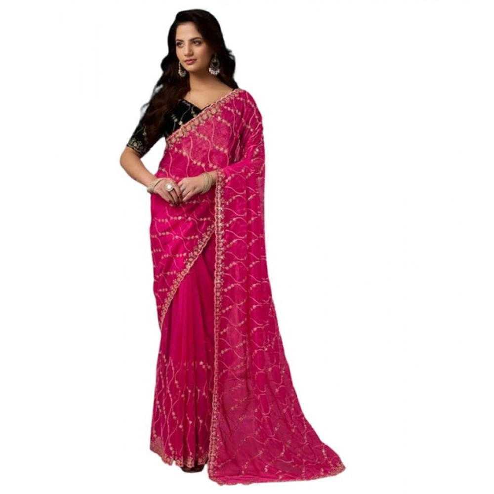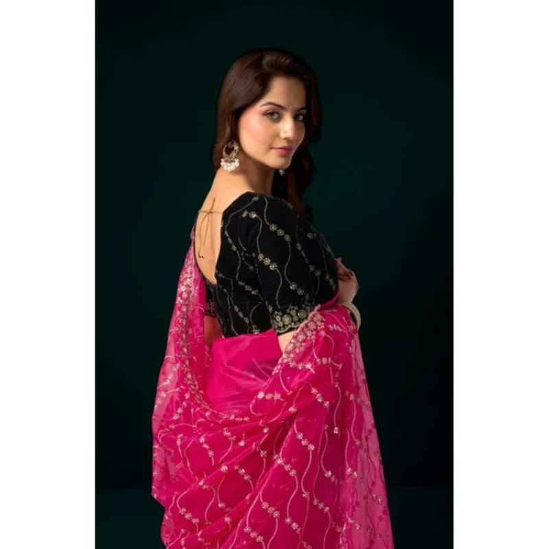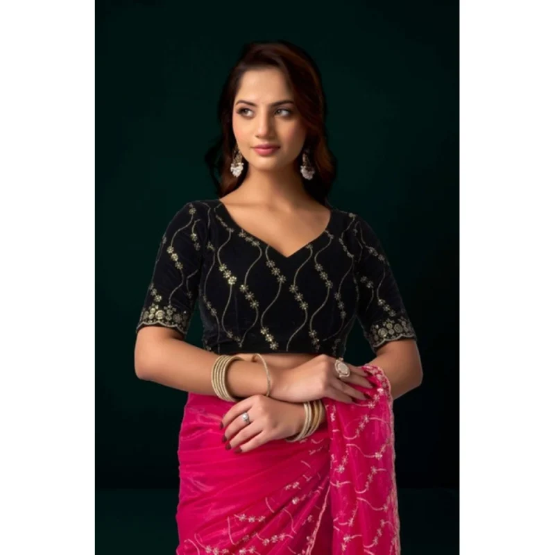 Women’s Net Sequence Saree With Unstitched Blouse 5.5Mtr