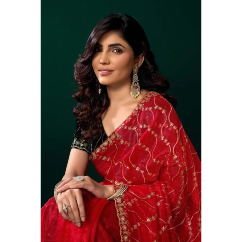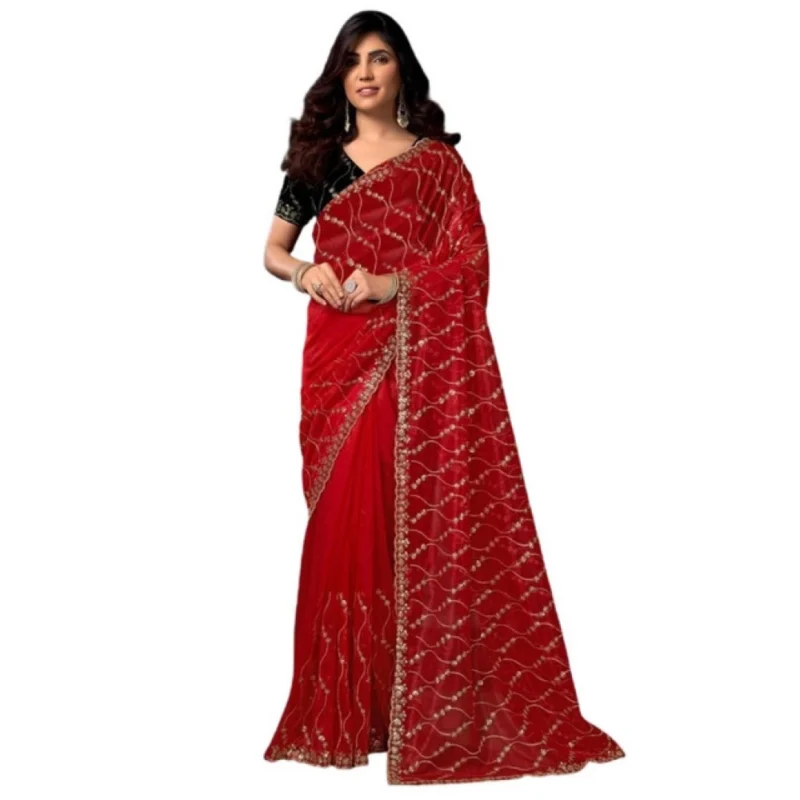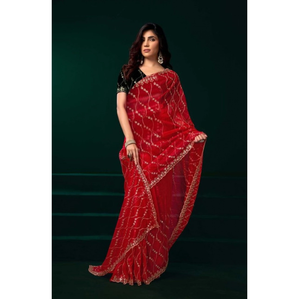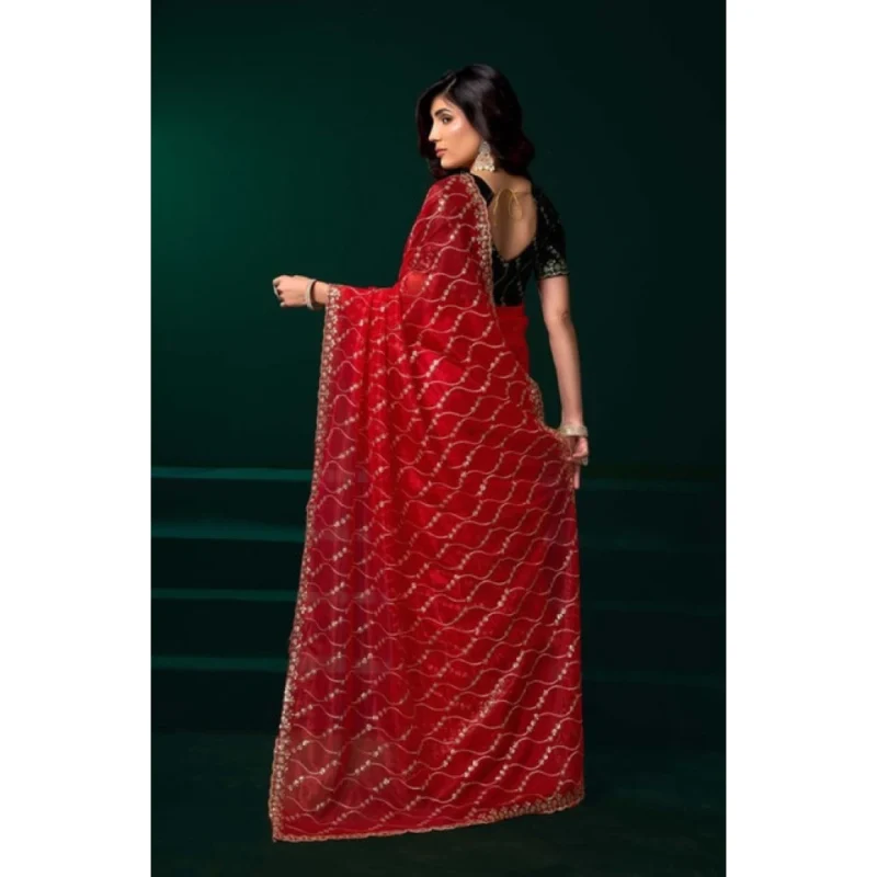 Women’s Net Sequence Saree With Unstitched Blouse 5.5Mtr