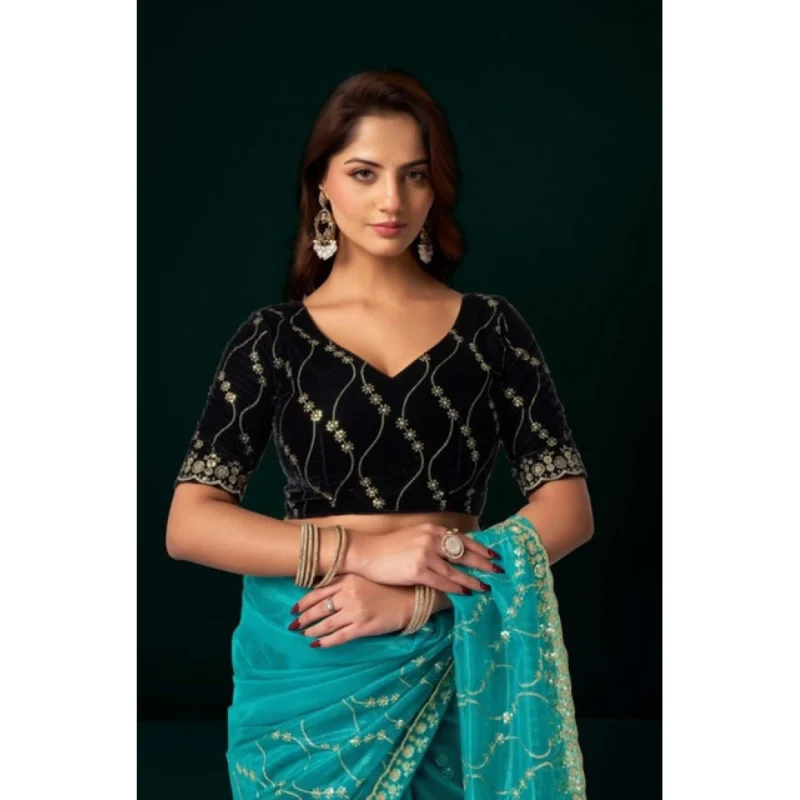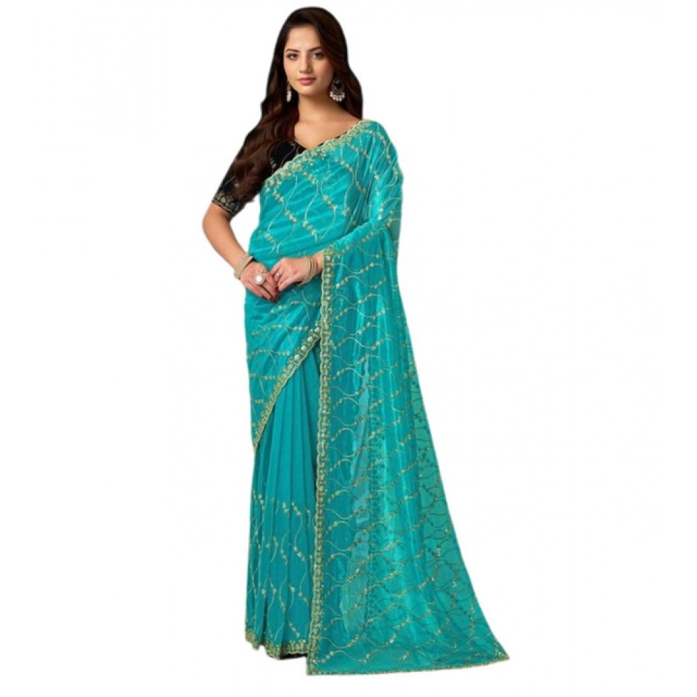 Women's Net Sequence Saree With Unstitched Blouse 5.5Mtr (Turquoise)