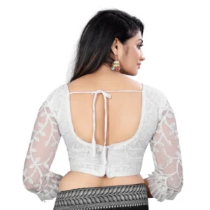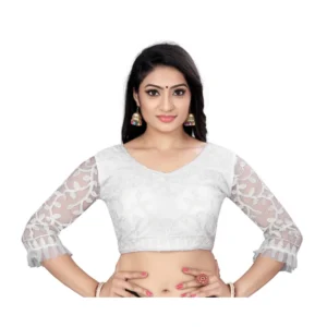 Women’s Nylon Net Embroidery Readymade Blouse (White, Size: Free Size)