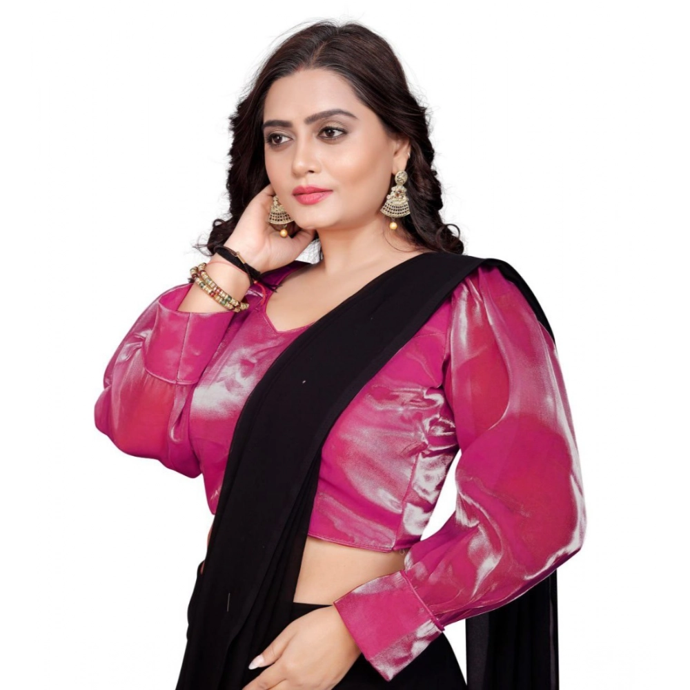 Women's Organza Plain Readymade Blouse (Pink, Size: Free Size)