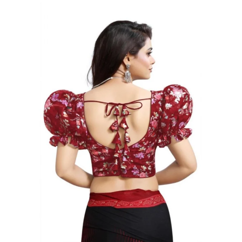 Women’s Organza Printed V Neck Puff Sleeve Readymade Blouse