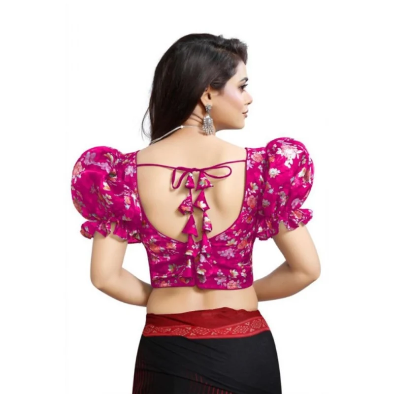 Women’s Organza Printed V Neck Puff Sleeve Readymade Blouse