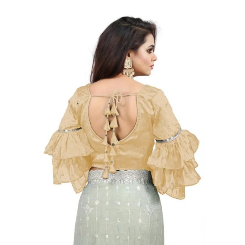Women’s Organza Solid V Neck Layered Ruffle Sleeve Readymade Blouse