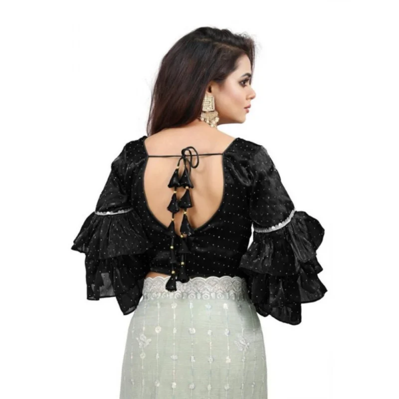 Women’s Organza Solid V Neck Layered Ruffle Sleeve Readymade Blouse