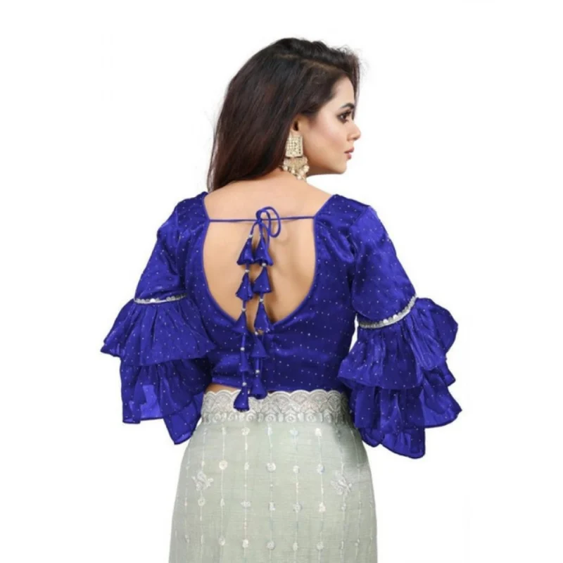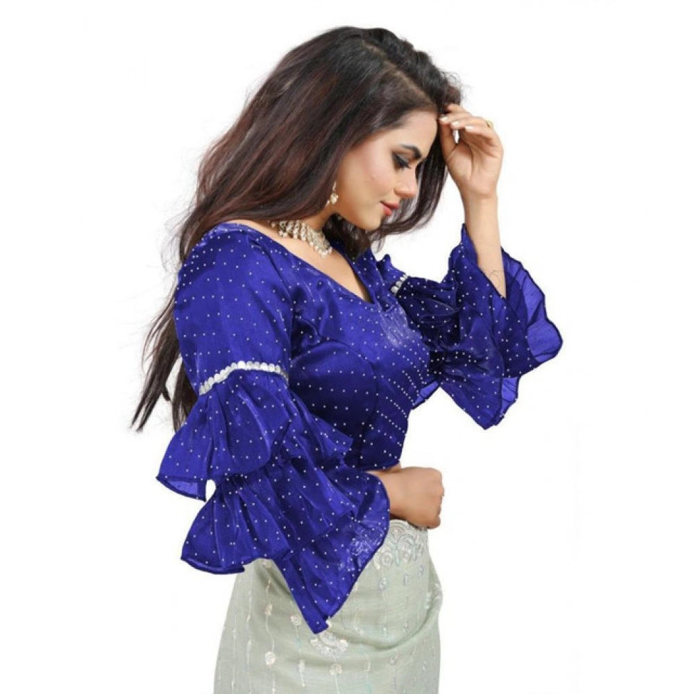 Women's Organza Solid V Neck Layered Ruffle Sleeve Readymade Blouse (Blue Free Size , up to 38鈥?0 Bust)-PID65849