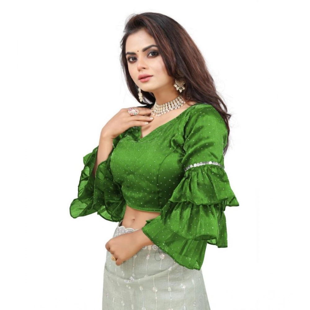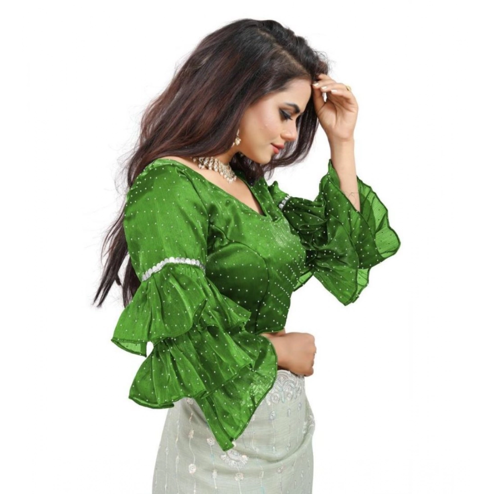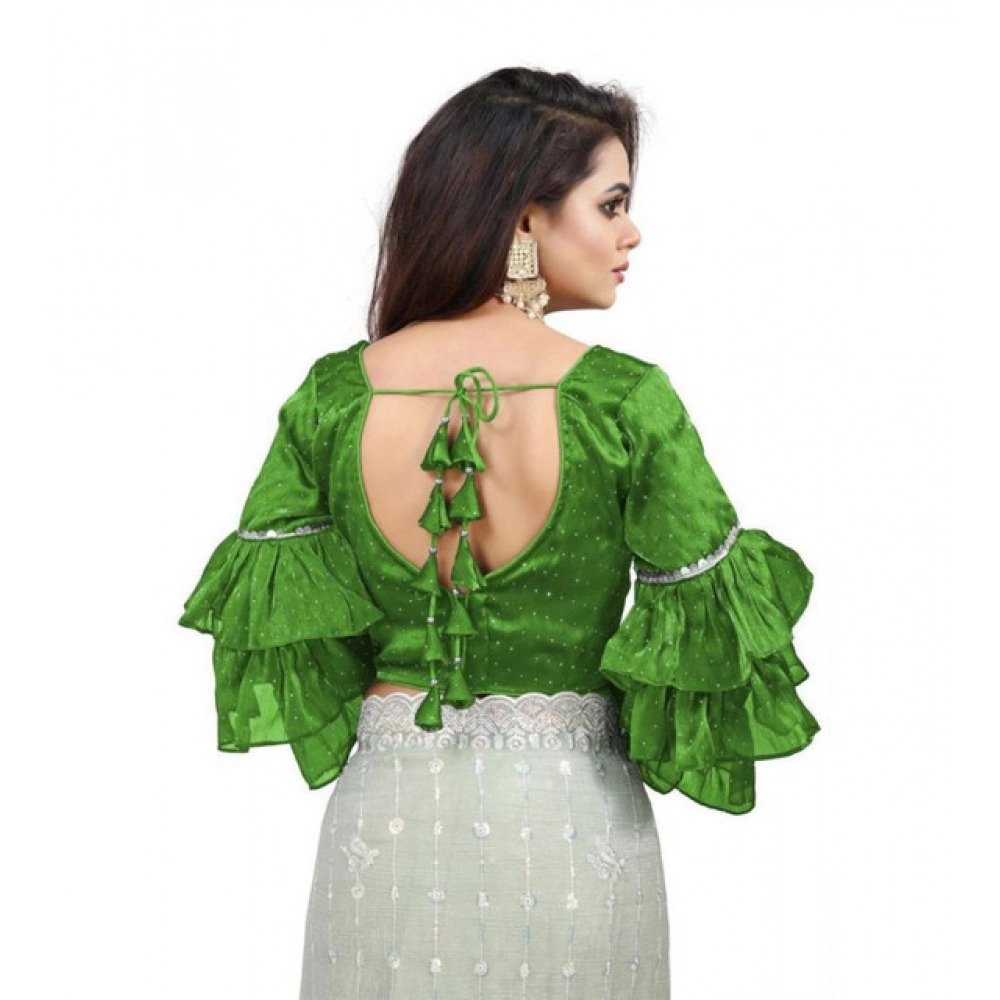 Women’s Organza Solid V Neck Layered Ruffle Sleeve Readymade Blouse